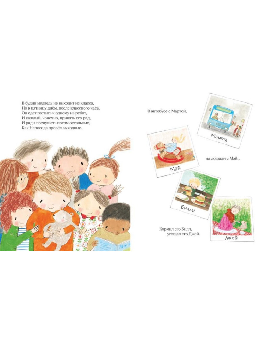 Медведь Непоседа жил с первоклассниками весёлой и кипучей жизнью — что ни выходной, то новая игра. Но как-то раз в понедельник он нечаянно выпал из ранца и был подхвачен торопливым дождевым ручьём. Так началось его собственное большое приключение.