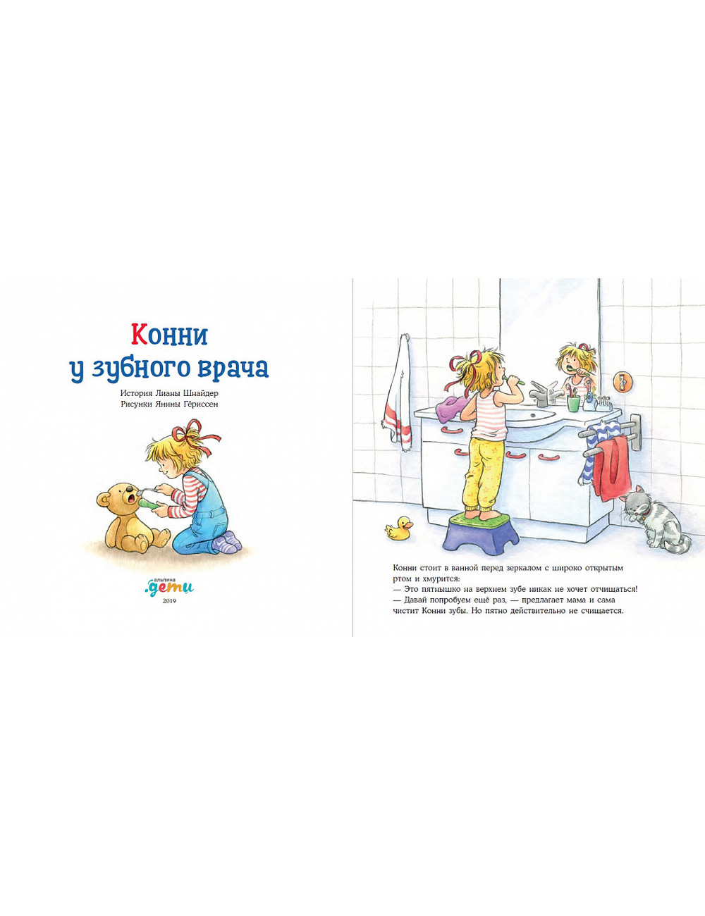 Вы уже прочитали историю? Тогда закройте книгу и предложите малышу вспомнить, про что она была. Почему Конни пришлось пойти к зубному врачу? Что было у него в кабинете? Когда нужно чистить зубы, чтобы они были крепкие и здоровые?