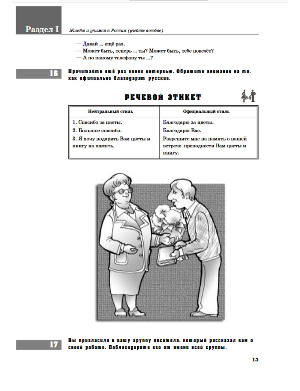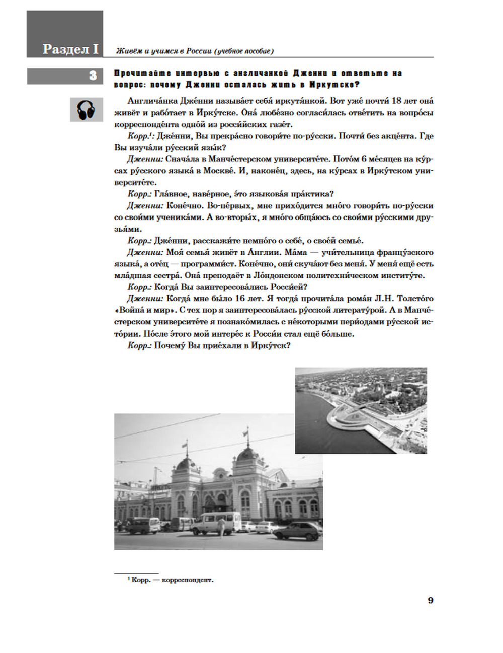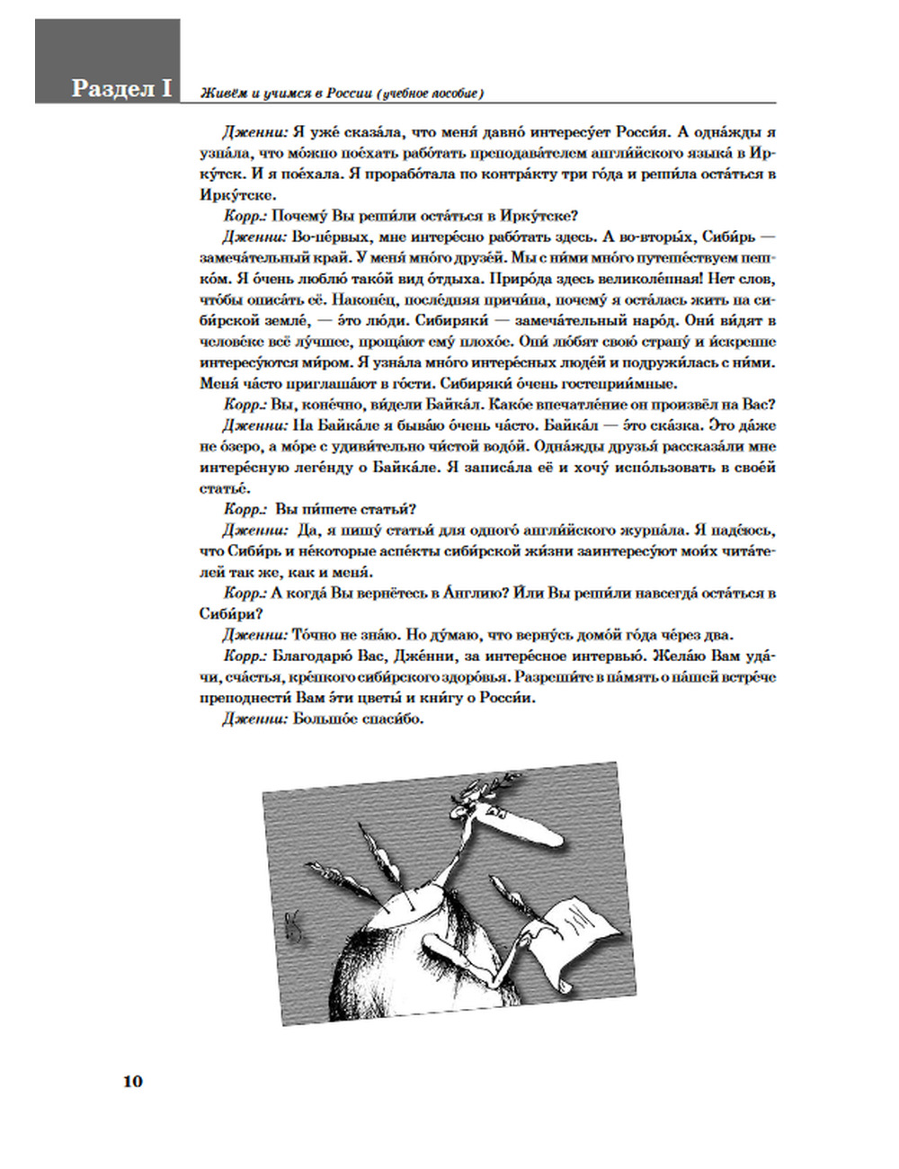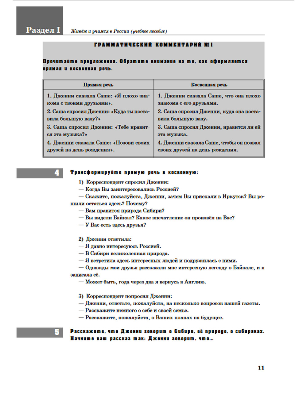 Учебник для взрослых, владеющих русским языком на базовом уровне (А2). Все формы обучения, в том числе система предвузовской подготовки (второй семестр). Обучает монологической и диалогической речи на примере текстов и полилогов разных стилей, развивает навыки чтения российской прессы, понимания теле и радиопередач. Готовит к сдаче теста I сертификационного уровня (В1). Обобщающие грамматические таблицы в приложении могут использоваться в качестве справочного материала. Аудиоприложение. «Живём и учимся в России. Рабочая тетрадь». Рекомендовано научно-методическим советом Института международных образовательных программ СПбГУ.