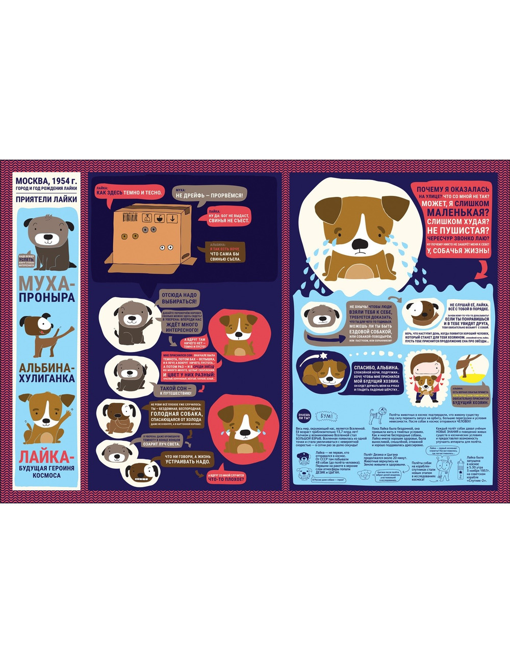 Книга посвящена Лайке — собаке, совершившей полёт в космос. Её путешествие на орбиту Земли стало знаменательным моментом в истории человечества. Свою короткую жизнь она отдала науке. Благодаря ей учёные получили новые знания о поведении живых существ в космических условиях. Юный читатель узнает не только о судьбе Лайки, но и получит научно-популярные сведения о Солнечной системе, о полётах в космос животных и людей. А чтобы не было скучно, в книге есть художественные фрагменты – рассказы Лайки о самой себе.