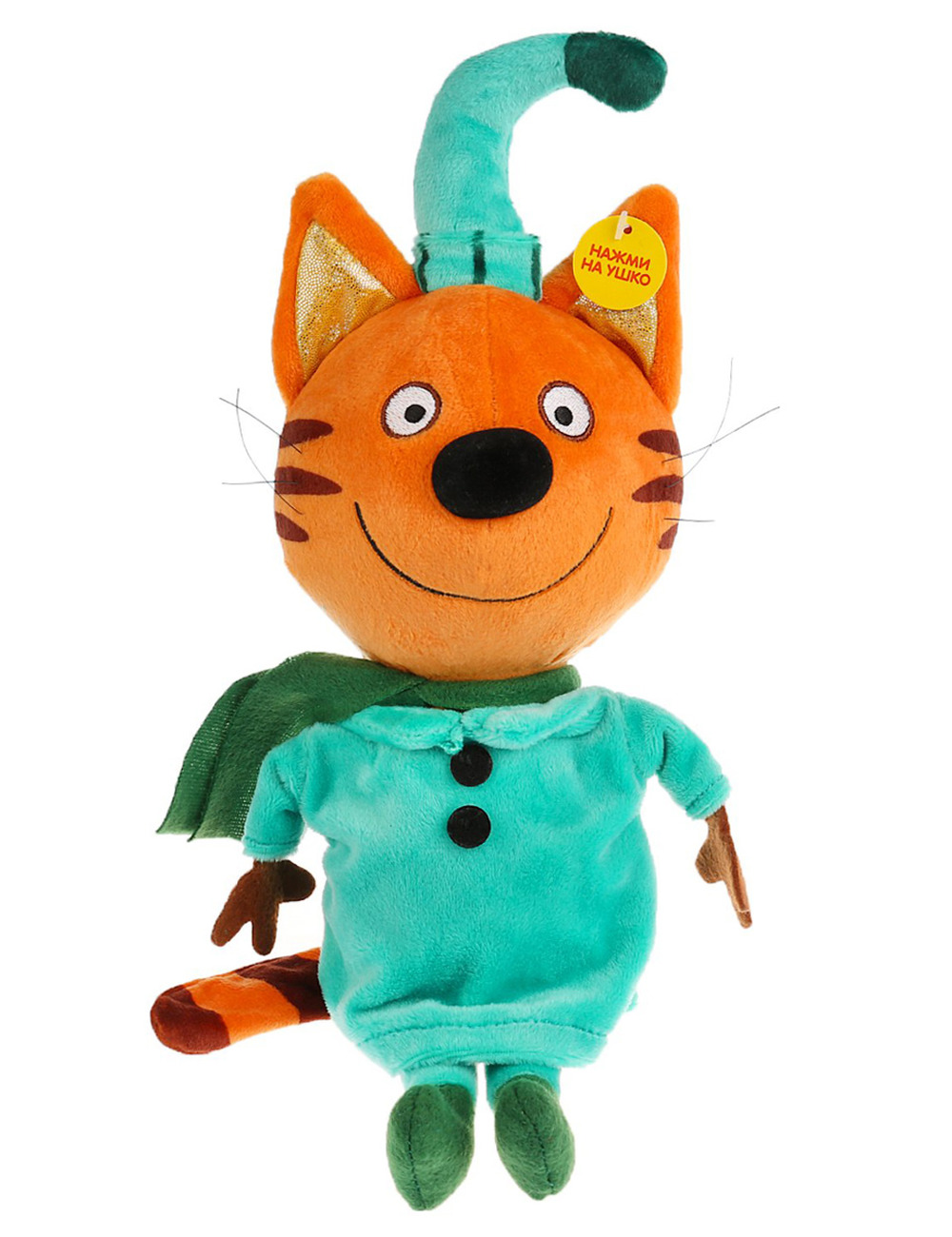 Компот одет в стильное пальто, шарф и шапочку-колпак, выполненные в бирюзовой цветовой гамме. Мягкий и приятный на ощупь, этот герой любимого детьми мультсериала «Три Кота» станет лучшим другом Вашего малыша! Небольшой размер позволяет брать игрушку с собой на прогулку или в поездку.