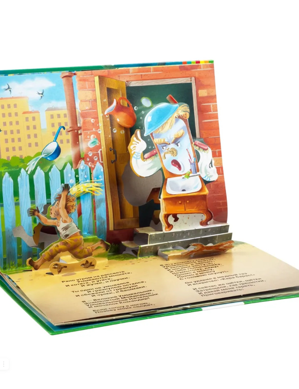Одна из самых любимых сказок К.И. Чуковского в популярном формате книжки-панорамки. Поучительный сюжет знаменитой истории развивается на объемных панорамных конструкциях. Герои покажут малышу пример того, как важно с раннего возраста приучаться к порядку и чистоте, заботе о своем доме и своем внешнем виде.