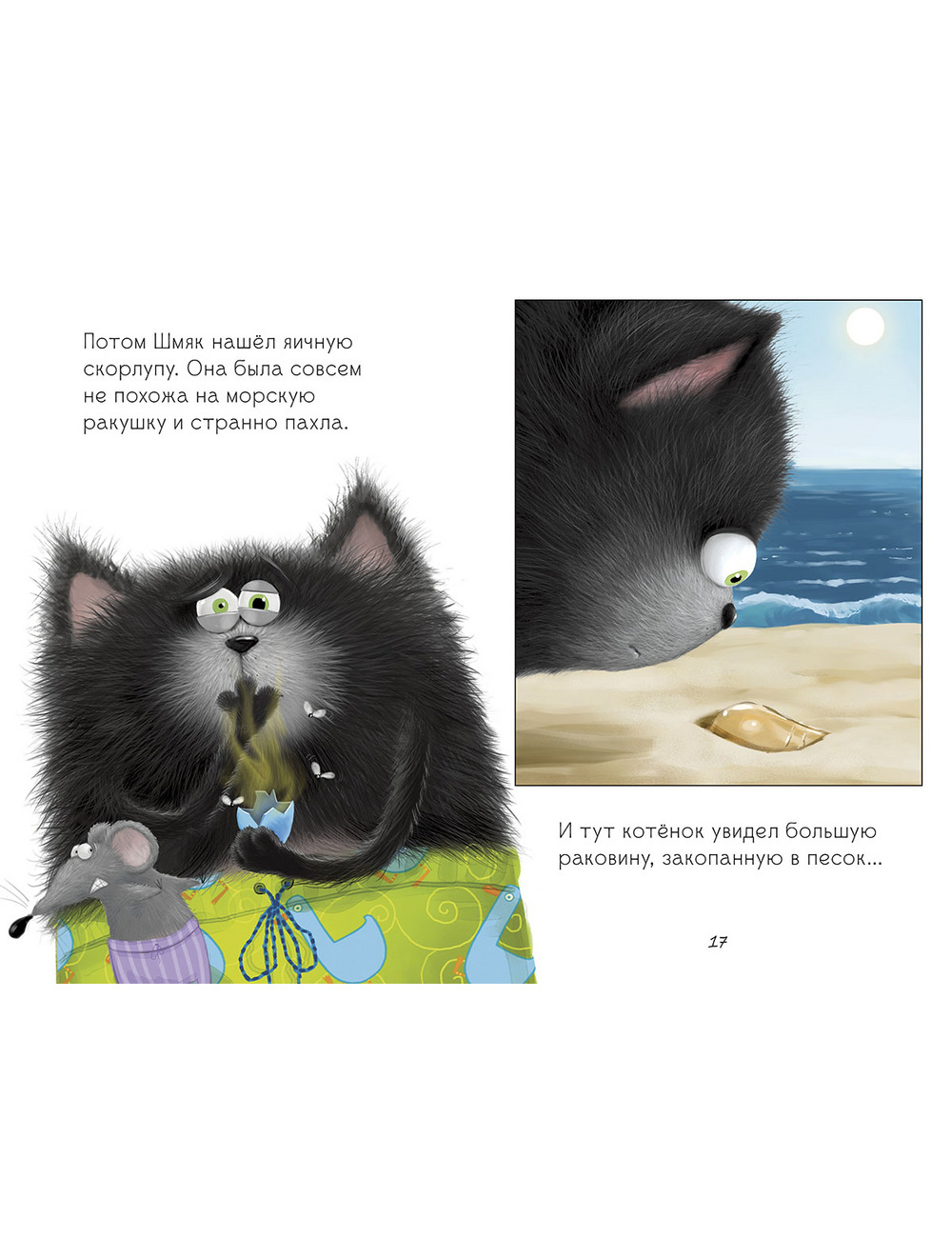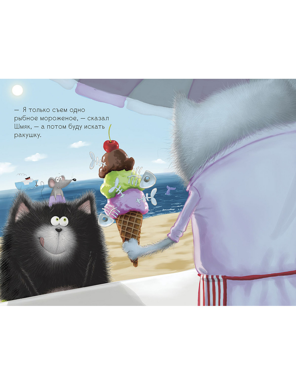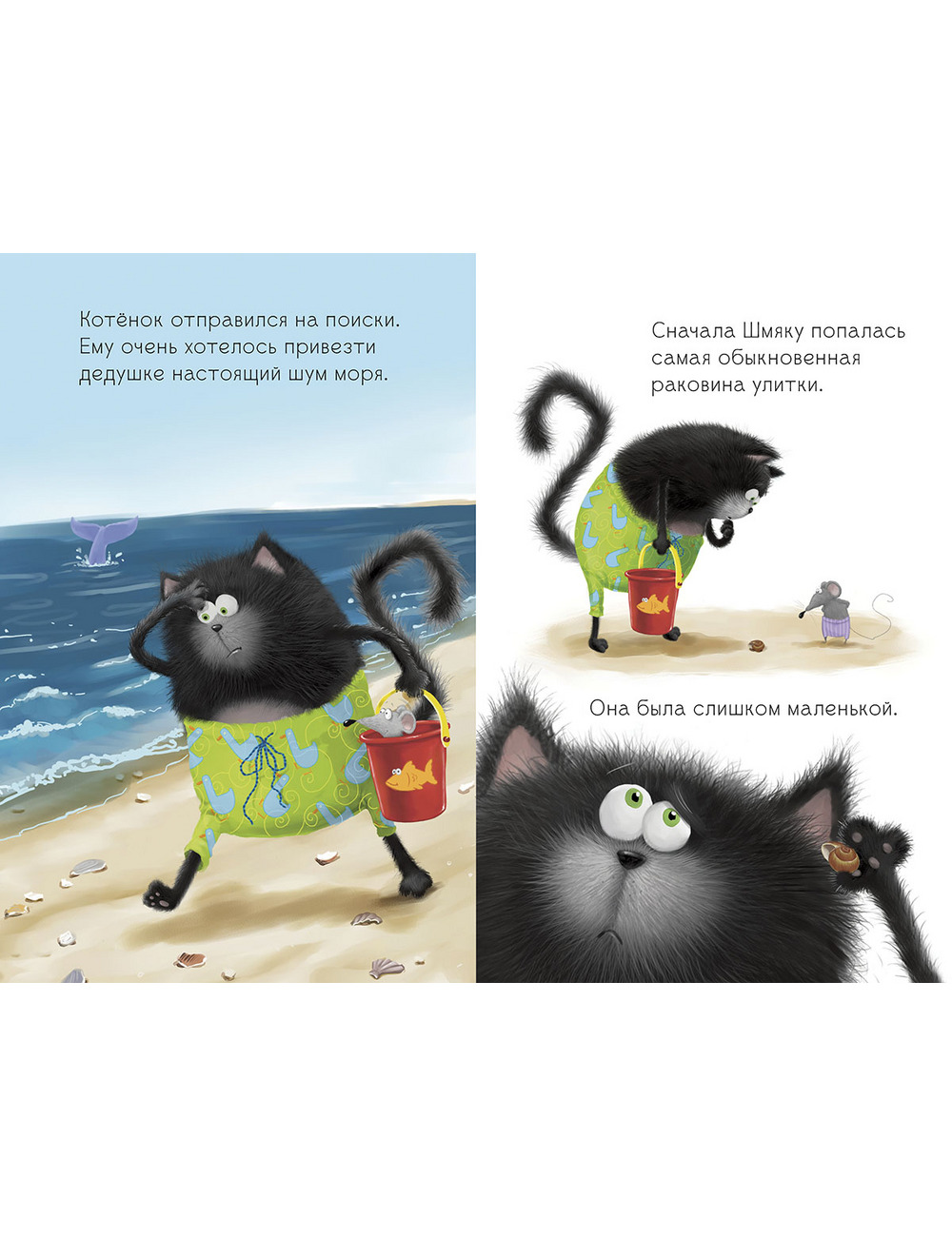 Кошачье семейство отправляется в отпуск. Шмяк мечтает найти ракушку с шумом моря внутри и привести её дедушке. Но все ракушки на берегу поломаны и разбиты. Неужели любимый дедушка так и останется без подарка?