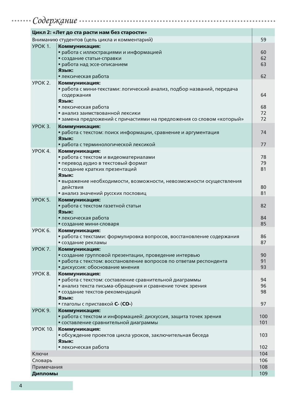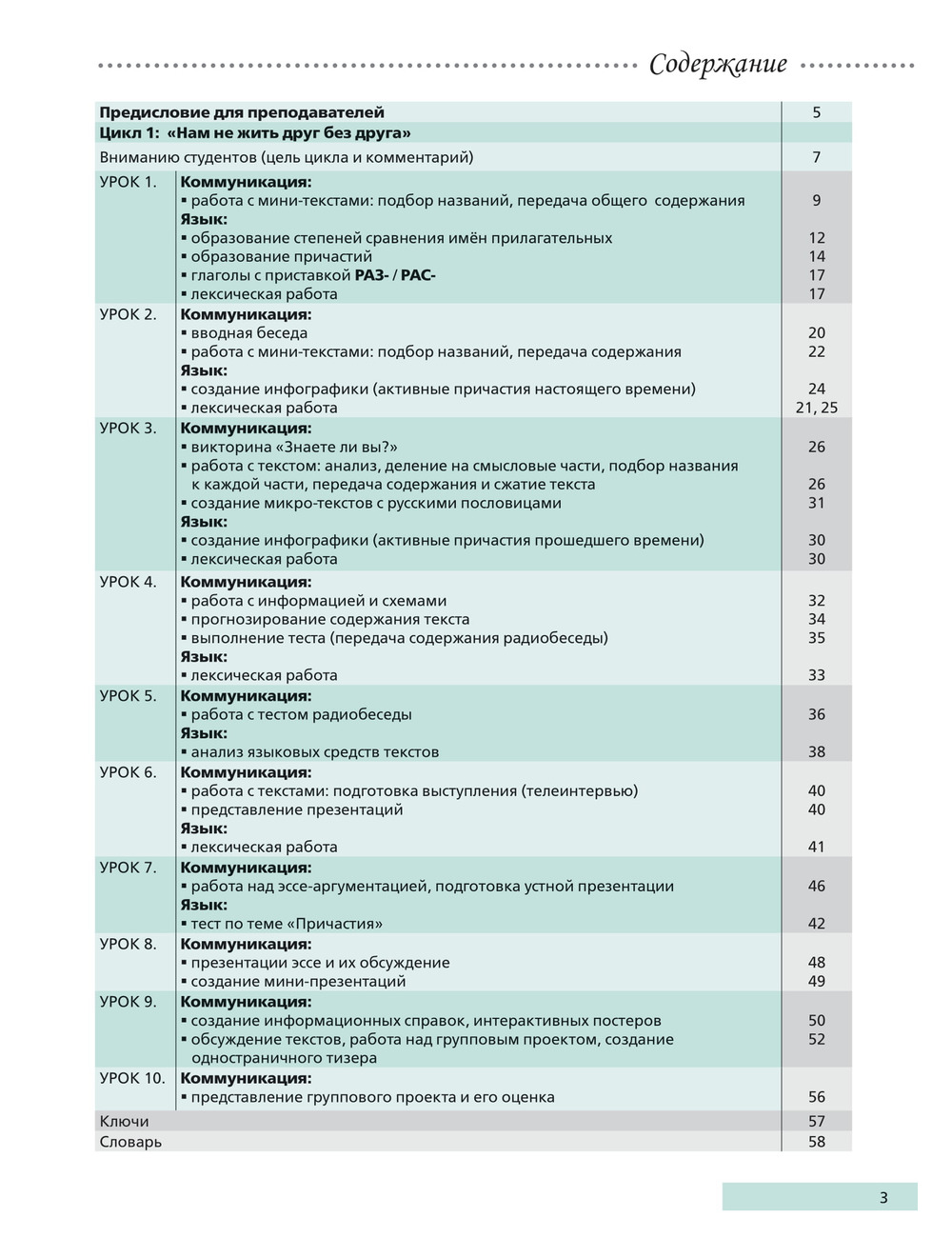В пособии впервые сочетаются современные российские и американские подходы к преподаванию русского языка как иностранного. Целью занятий является подготовка к эффективной межкультурной коммуникации, что достигается через отработку языкового материала по принципу перевёрнутого класса (fl ipped classroom) и выполнение групповых проектов, креативных заданий, развивающих
