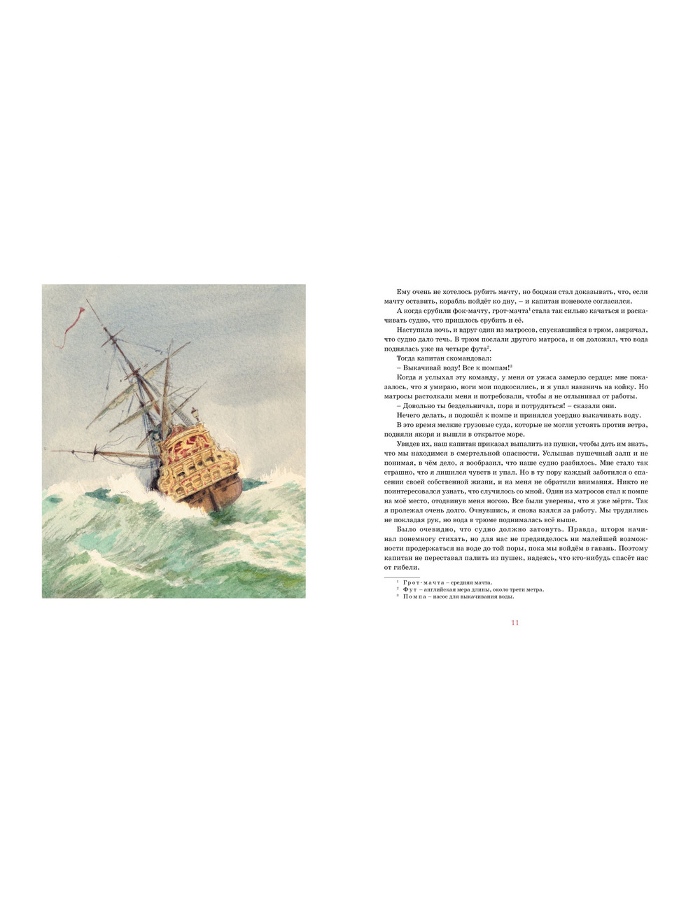 Знаменитый роман английского писателя Даниэля Дефо (1660–1731) впервые был опубликован 300 лет назад. Но что удивительно, необыкновенные приключения Робинзона Крузо, волею случая оказавшегося на необитаемом острове, по-прежнему увлекают юных романтиков. Жизнь морехода полна испытаний и неожиданных событий, но он с честью и стойкостью преодолевает все трудности и невзгоды, выпавшие на его долю, и мужественно противостоит судьбе.