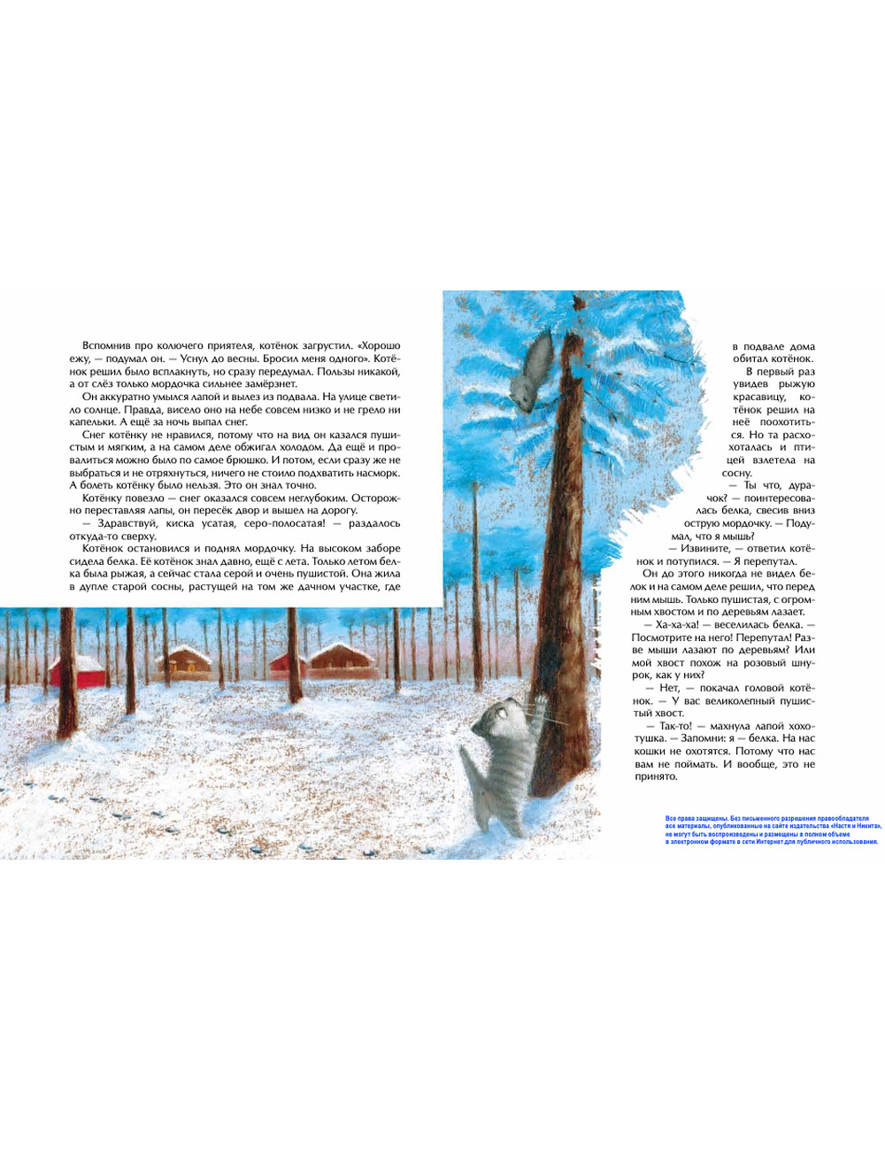 Эта добрая зимняя сказка переносит читателя в опустевший дачный посёлок, где мёрзнет и грустит маленький, пушистый и очень голодный бездомный котёнок. И, кажется, уже никто не может ему помочь. Но, как это бывает на Рождество, начинают происходить неожиданные события и настоящие чудеса. В посёлке появляются люди, на участке наряжают ёлку, а у тех, кто не бросит друга в беде, кто отважно придёт на помощь, кто умеет терпеть, любить и быть благодарным, осуществляются заветные мечты.