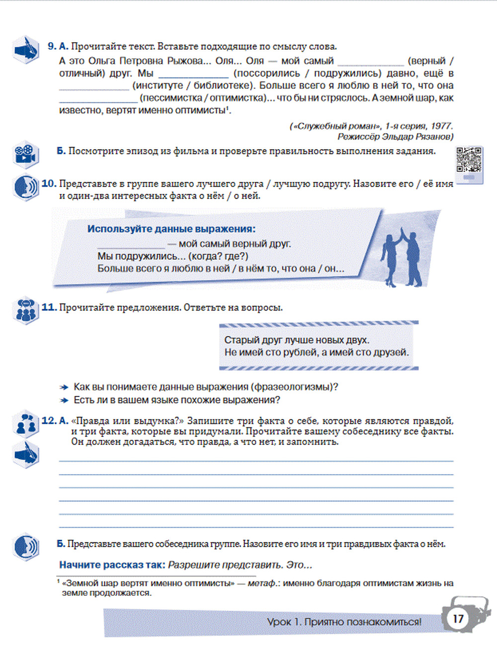 Пособие содержит материалы разного уровня сложности и может быть использовано для аудиторной работы с учащимися, владеющими русским языком на уровнях A2, B1, B2.