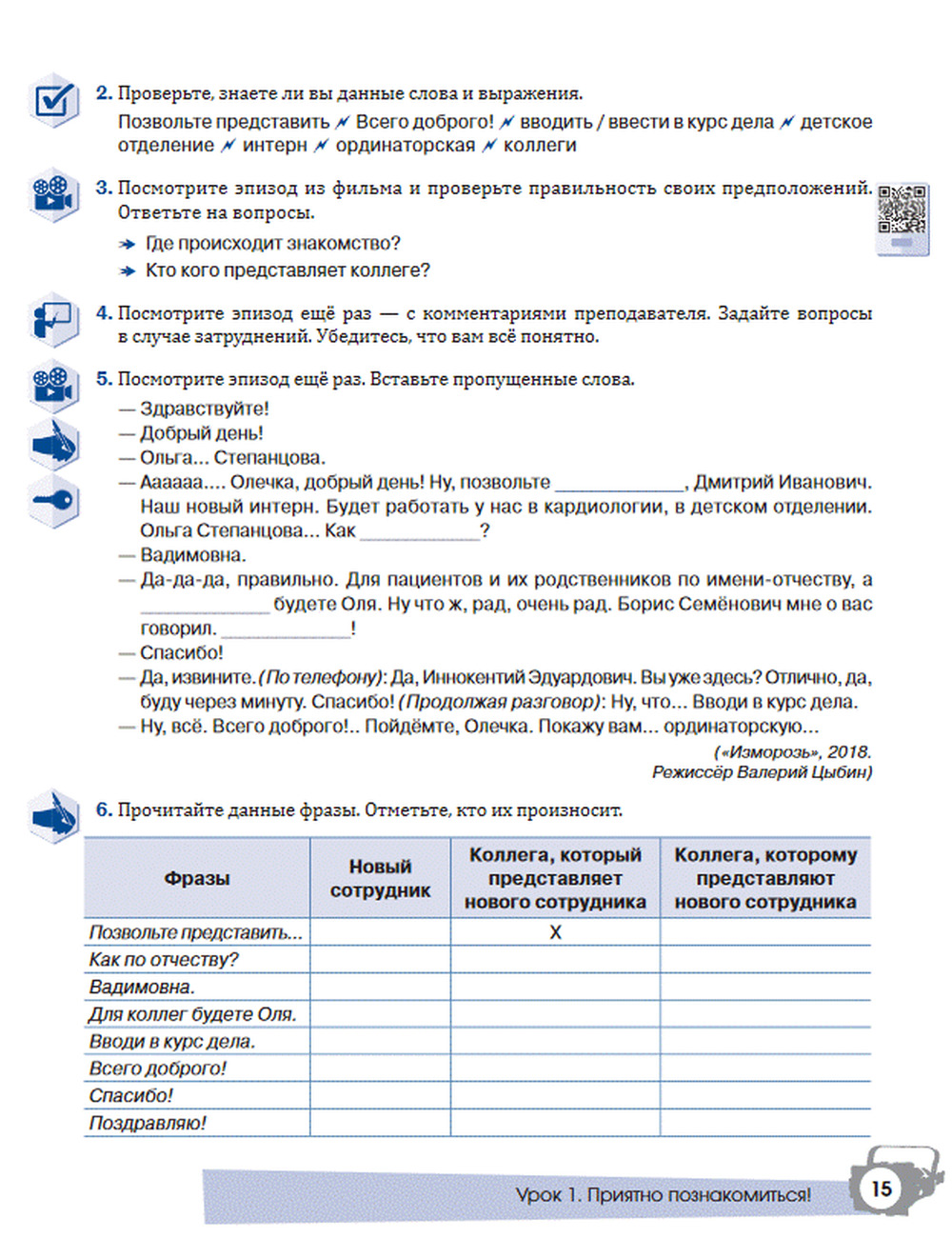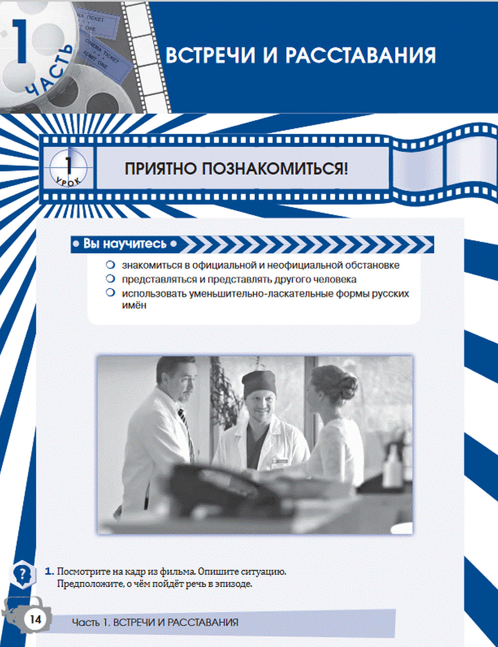 Учебное пособие «Эпизоды» состоит из 32 уроков, включающих в себя более 100 видеосюжетов из современных российских кинофильмов и телепередач и систему заданий, выстроенную на их основе.
