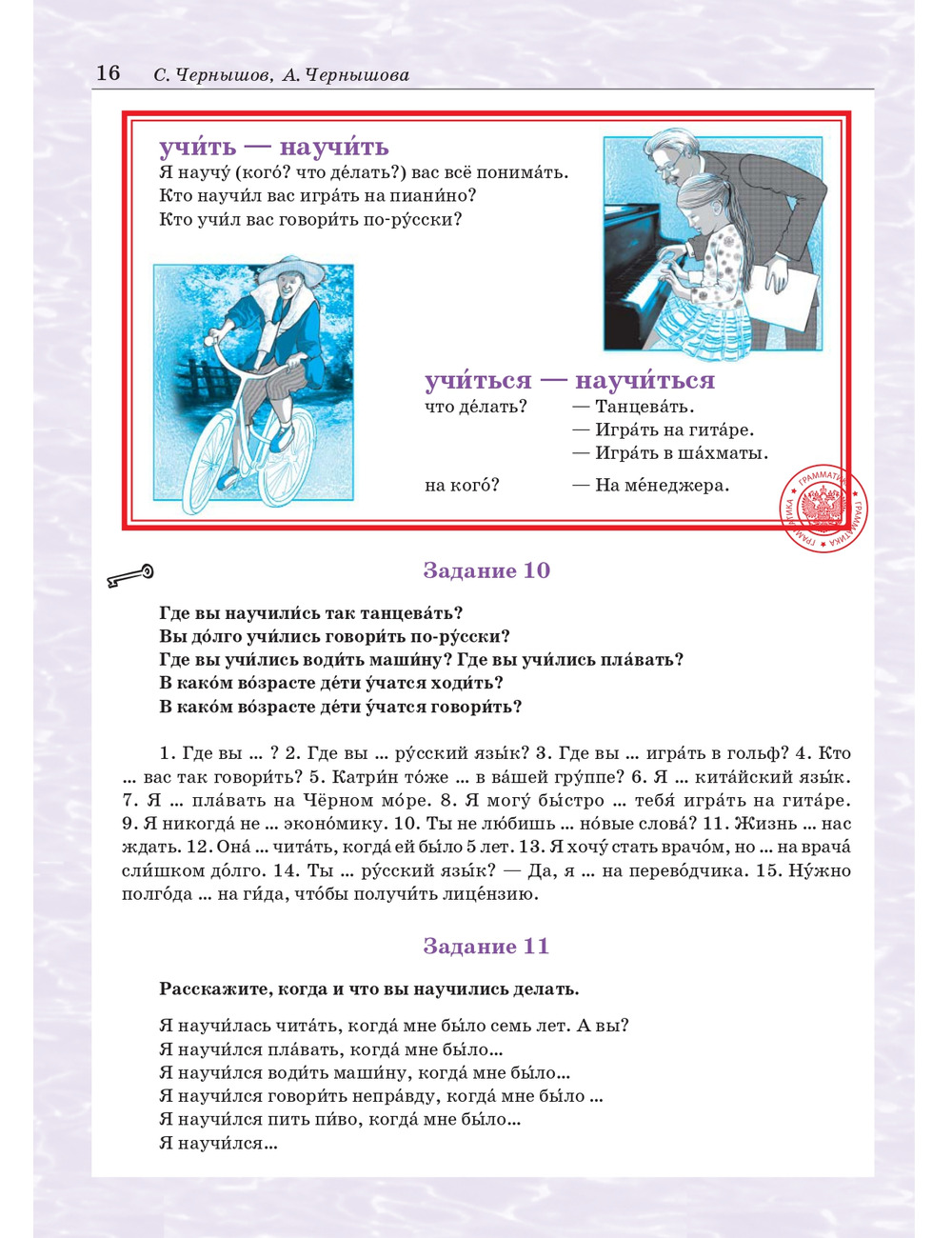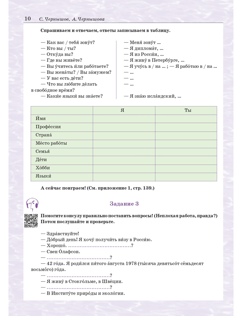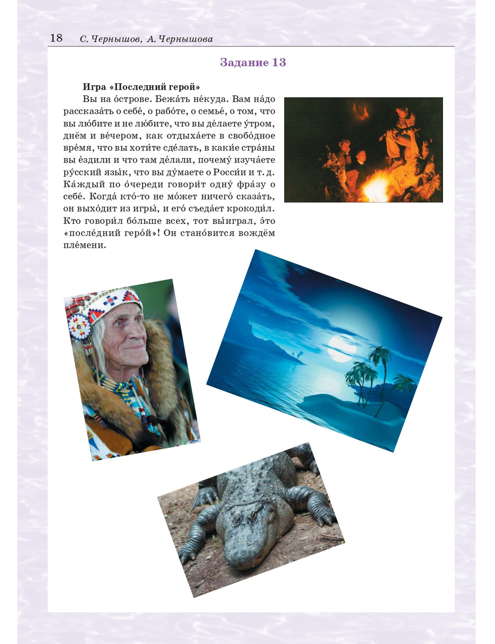Вторая часть популярного курса русского языка для взрослых предназначена для продолжающих изучать русский язык на базовом — первом уровнях (А2–В1). Курс рассчитан в среднем на 80–120 часов. Его задача — обеспечение быстрого освоения разных аспектов языка и видов речевой деятельности. В учебнике совмещены грамматический и разговорный курсы. Имеются игровые задания, аудиоприложение, ключи. Послушать или скачать аудиофайл к заданию можно по QR-коду рядом с заданием.
