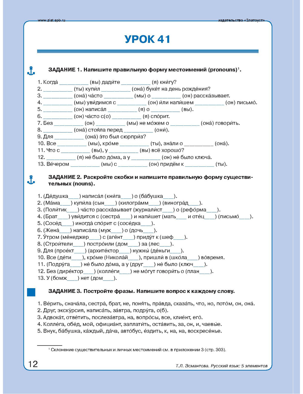 папку студента (грамматические таблицы, словарные карточки);