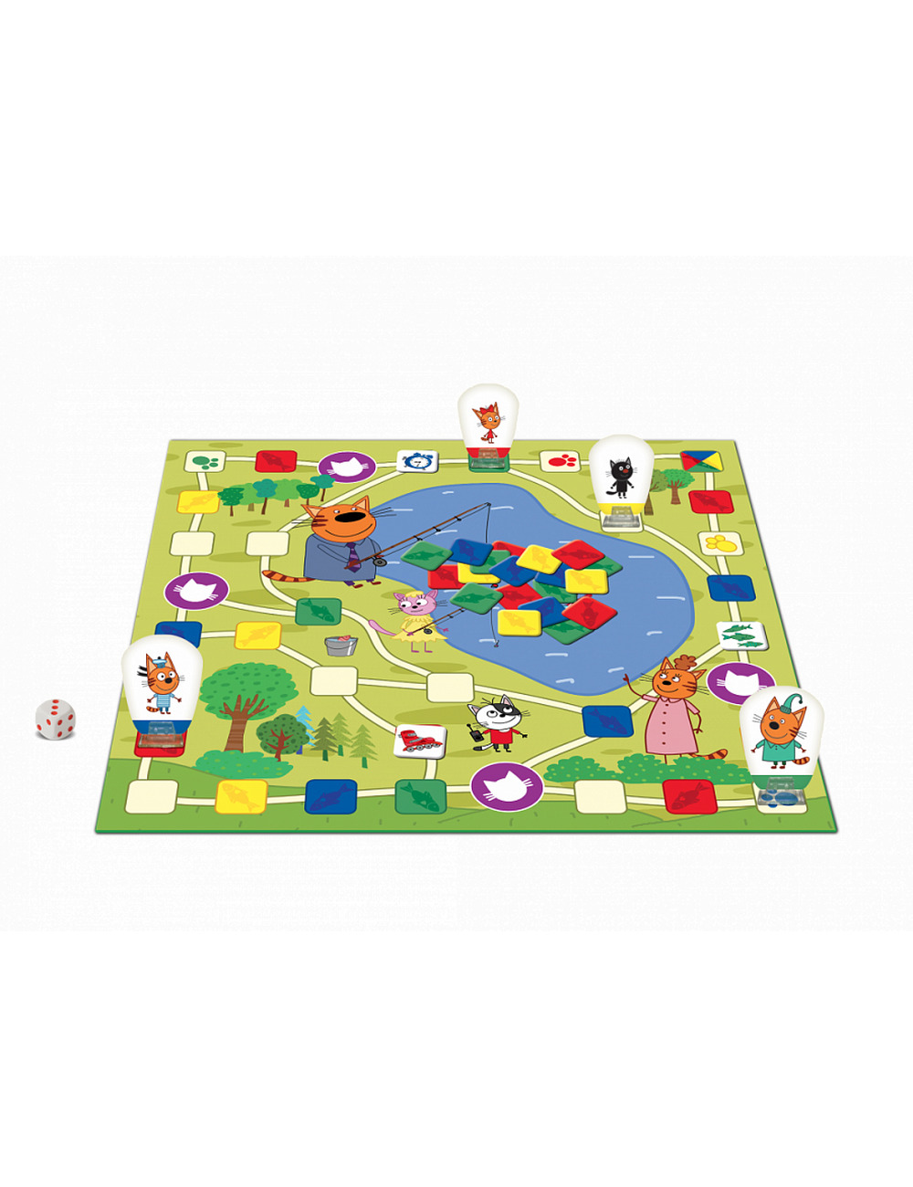 Игроки будут бросать кубик, двигать фишки котят по игровому полю и ловить рыбу в пруду. А вот что удастся поймать - большой секрет!