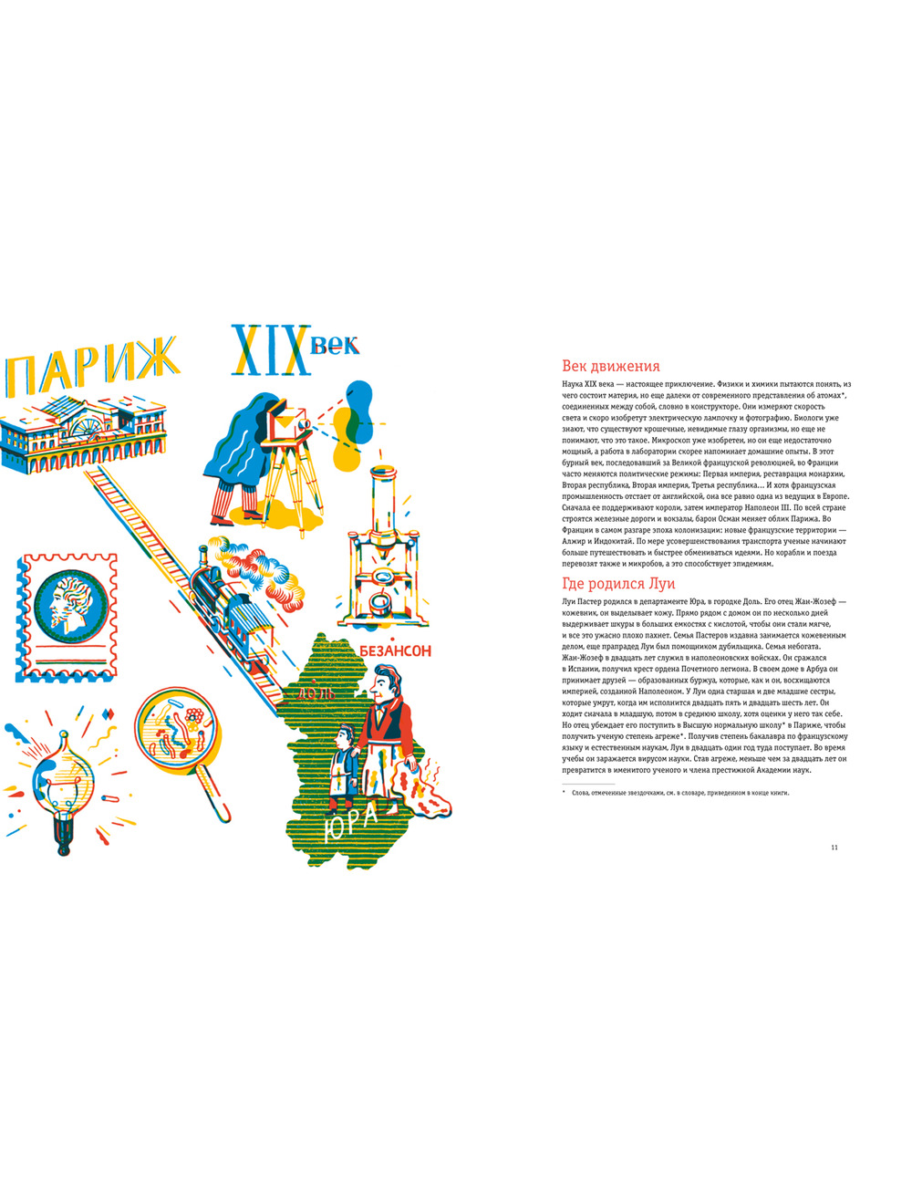 Наука XIX века — настоящее приключение. Физики и химики пытаются понять, из чего состоит материя, биологи уже знают, что существуют крошечные организмы, но еще не понимают, что это такое, а работа в лаборатории скорее напоминает домашние опыты. В это время Луи Пастер совершает свои удивительные открытия: обнаруживает микроорганизмы, от которых портится вино и гибнет шелкопряд, доказывает, что жизнь не может зародиться «из ничего», изобретает вакцину от бешенства... И каждая новая задача — как детективное расследование.