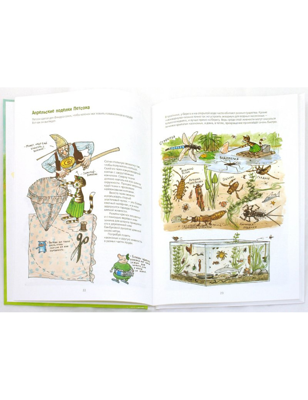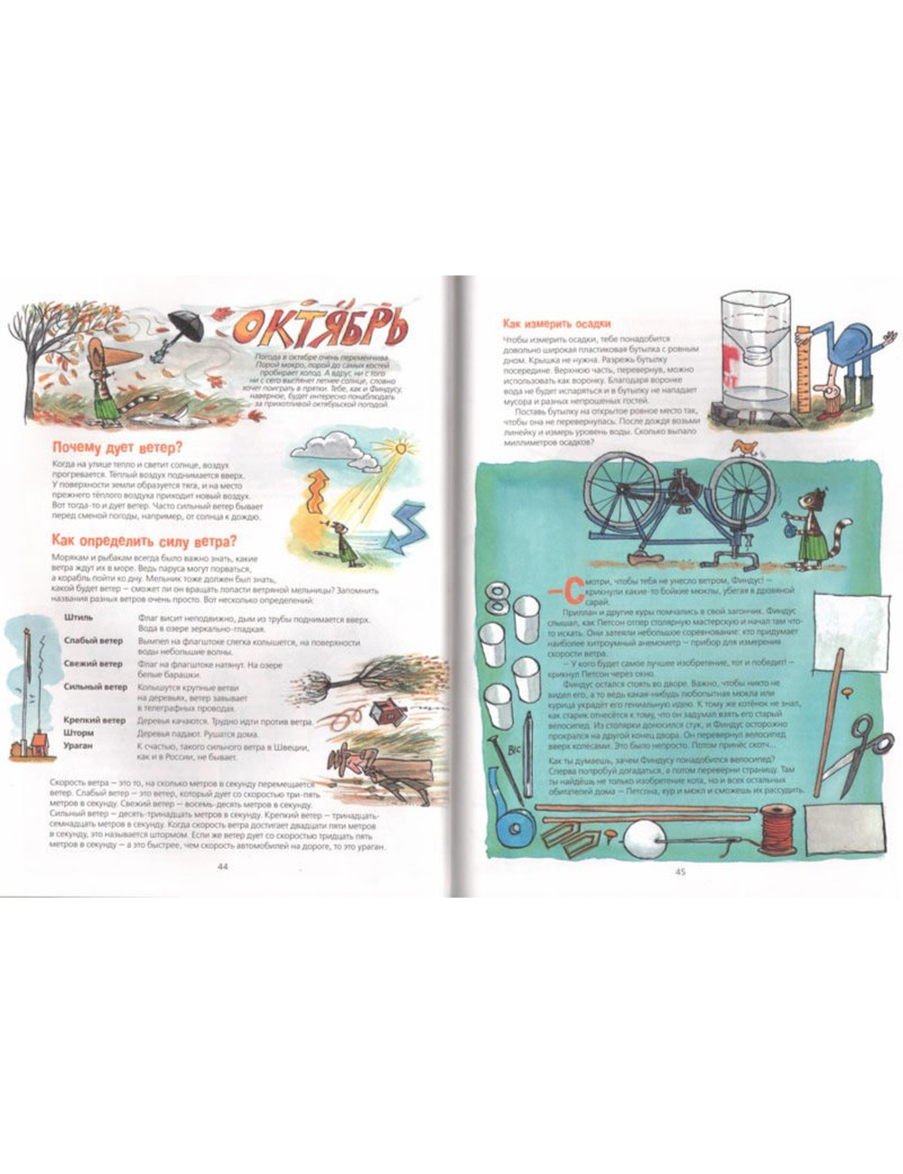 "Поделки Финдуса" — познавательная книга, из которой дети узнают интересные факты о растениях (как пересадить комнатные цветы или проращивать семена), животных (правда и вымысел о дождевых червях, что животные делают зимой) и многое другое (как сделать скворечник, сачок или кормушку для птиц). В книге 12 глав с яркими иллюстрациями, посвящённых 12 месяцам. Для каждого Петсон и Финдус придумали увлекательные развлечения. Чем заняться темными зимними вечерами? Как весело и интересно провести летние каникулы? Ответить на эти вопросы помогут захватывающие рецепты от скуки, придуманные любимыми героями детей и родителей. Петсон и Финдус научат мастерить животных из шишек, пересаживать растения и проращивать семена, делать бусы из гороха с фасолью, печь вкусный пирог с красной смородиной, строить домик из палочек для мороженого и даже разводить головастиков! Все, описанное в этой книге, можно сделать дома: для экспериментов и поделок не потребуется никаких особых затрат. Кроме того, Петсон преподаст читателям маленькие уроки волшебства: как превращать белые тюльпаны в синие, ореховые скорлупки в колеса для машины и т.д.