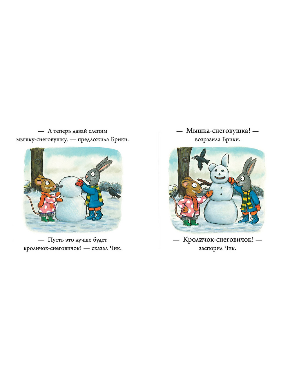 Как здорово лепить вместе снеговика! Вот только Чик и Брики никак не могут договориться, кто это будет – зайчик или мышка…