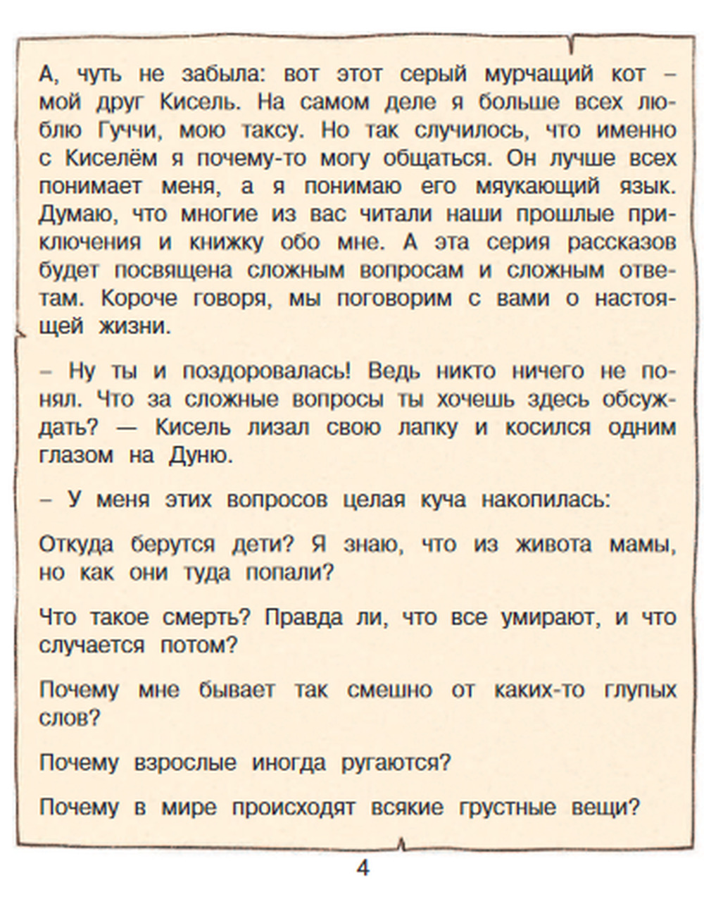 Дорогие читатели! Перед вами – новые истории от уже полюбившихся героев, девочки Дуни и кота Киселя, а значит – и новые терапевтические сказки на действительно важные и уже взрослые темы. Наши малыши растут, у них появляются другие вопросы и интересы, и многим родителям найти подходящие ответы уже не так легко, как раньше.
