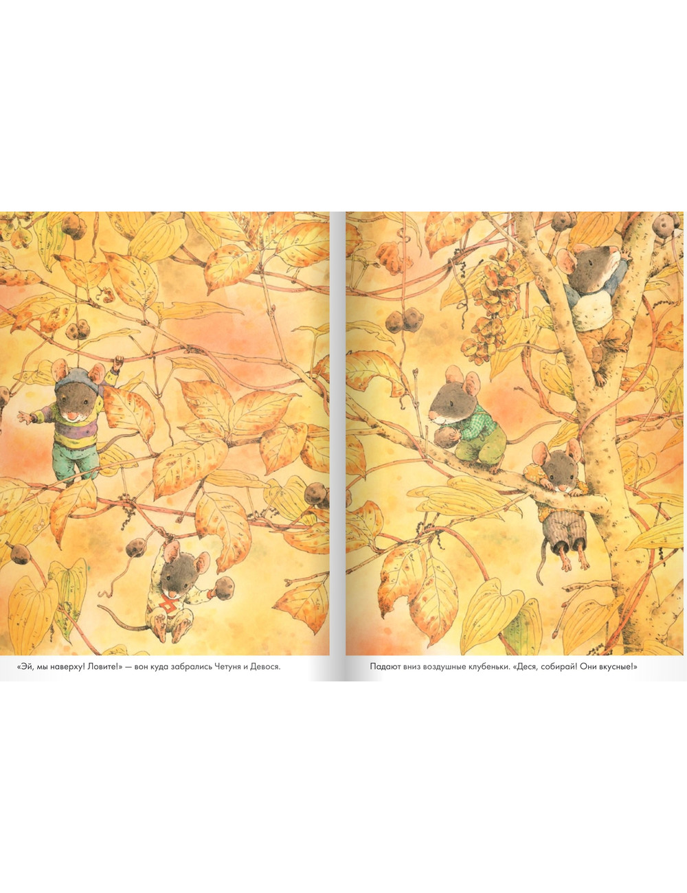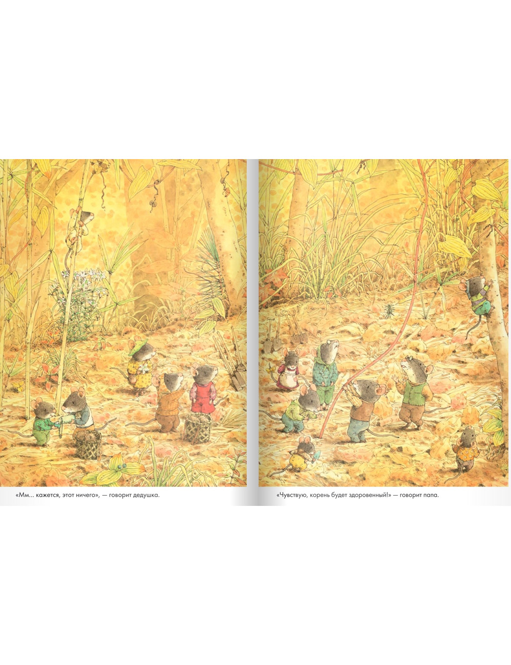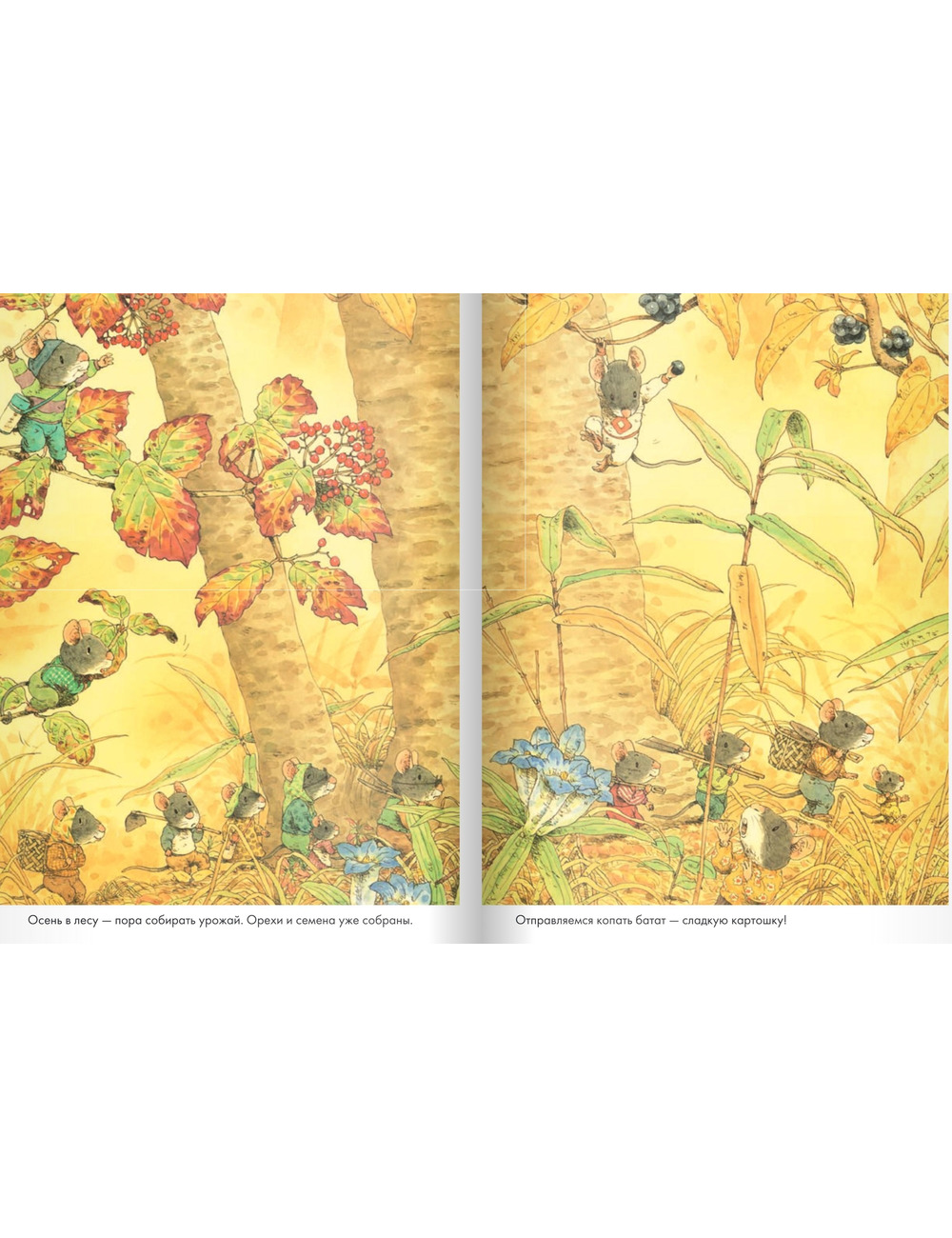 Осень в лесу — пора собирать урожай. Орехи и семена уже собраны. Отправляемся копать батат — сладкую картошку вместе с очаровательным семейством мышат из книг японского художника Кадзуо Ивамура. Непростое это дело, когда корень батата большой и прячется глубоко под землей! Но все возможно, когда вся семья — и маленькие, и большие — трудятся вместе. И какой красивый лес вокруг, и какой вкусный ужин из сладкой картошки получился, объедение!