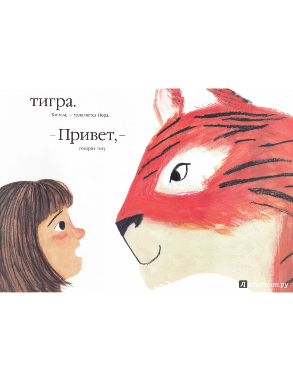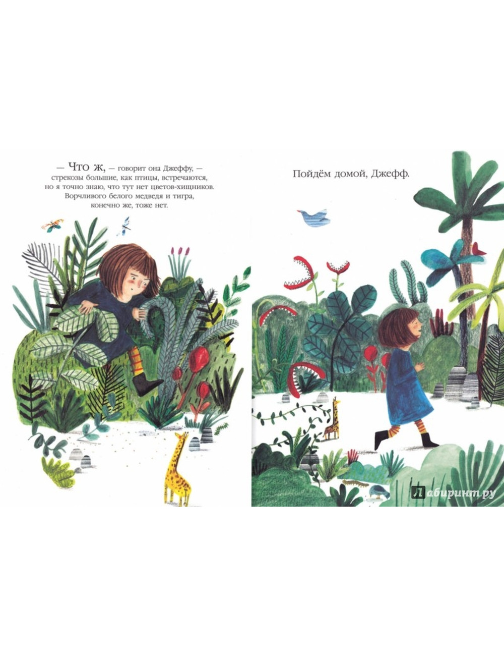Норе стало скучно, и тогда бабушка предложила ей выйти погулять в сад - ведь там есть настоящий тигр! Но девочка не верит: она уже слишком взрослая, чтобы играть в такие глупые игры. Вот и игрушечный жираф Джефф уверен, что ни огромных птиц, ни белого ворчливого медведя, ни тем более тигра в привычном саду нет. Но… если бабушка говорит, стоит пойти и проверить. Так начинается эта история о том, что бывает, если включить воображение.