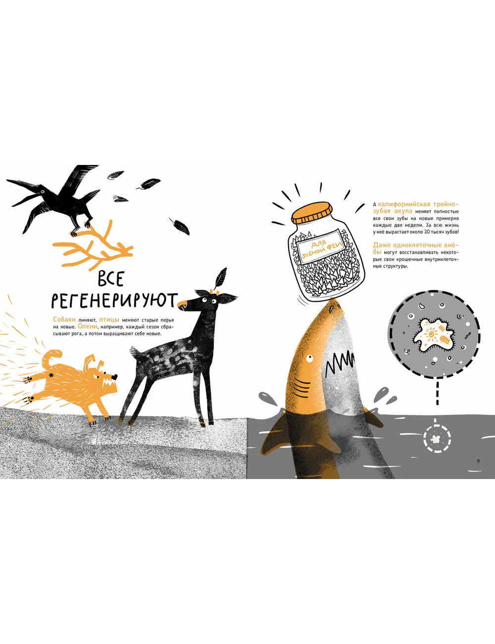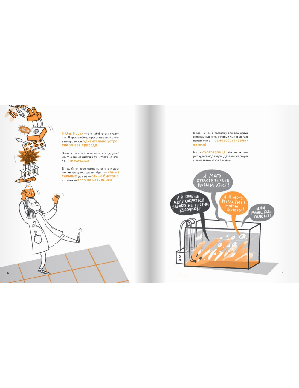 Это - долгожданная вторая книга о микросупергероях учёного биолога и одновременно художницы Ольги Посух. Книга - о суперспособности к регенерации. Герои этой книги запросто могут отрастить себе новую ногу, хвост, голову или даже две головы! Они умеют из кусочка своего тела создать себе двойника! Они способны собраться заново из тысячи частей. А ещё с ними можно познакомиться: о том, где их найти, - тоже в этой книге.