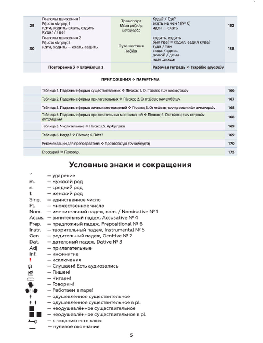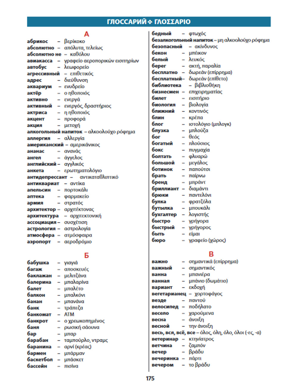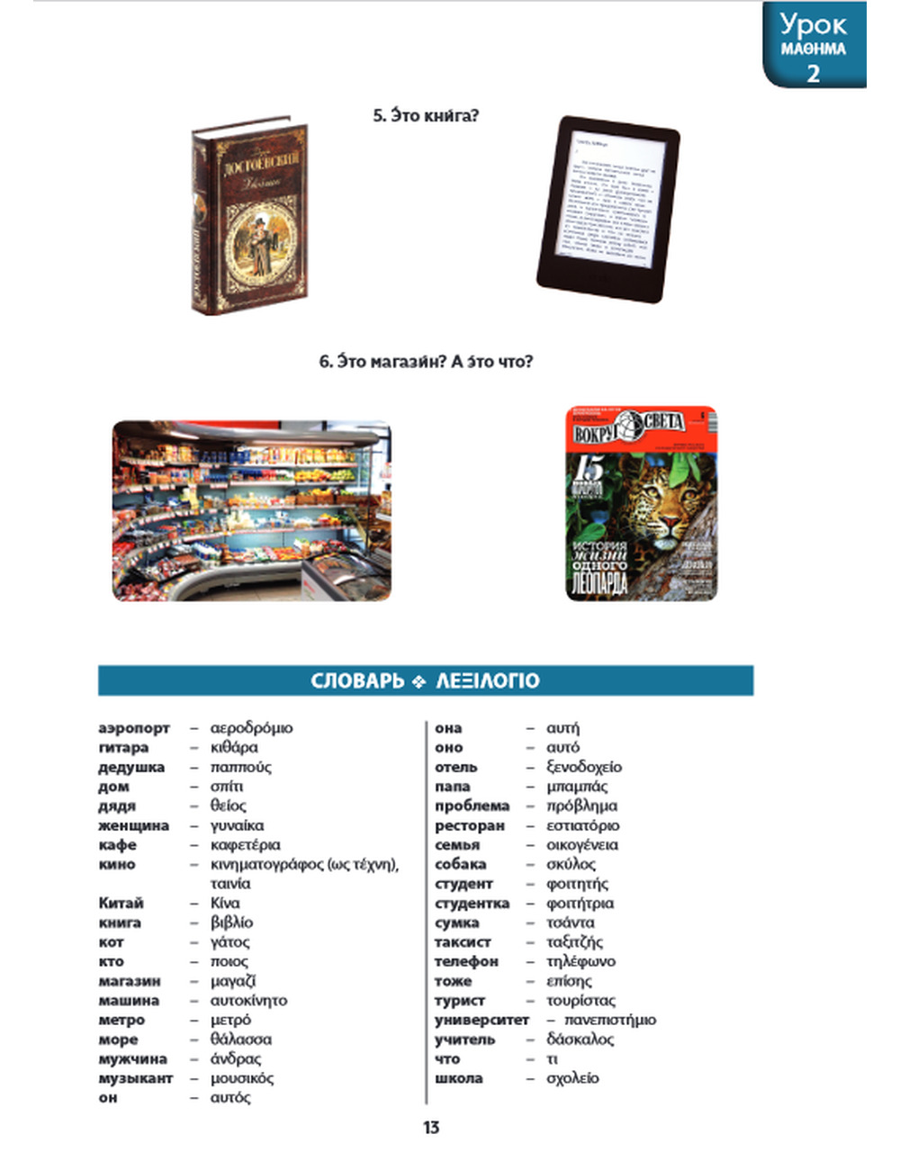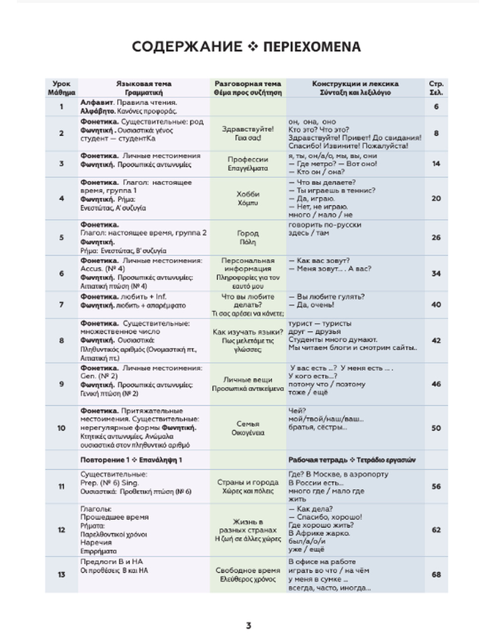 От российского издания учебник отличается переводом заданий и комментариев на греческий язык, что существенно облегчает процесс обучения, а также наличием словаря использованных слов и понятий после каждого урока и полным глоссарием всех слов с переводом на греческий язык для начального этапа обучения.