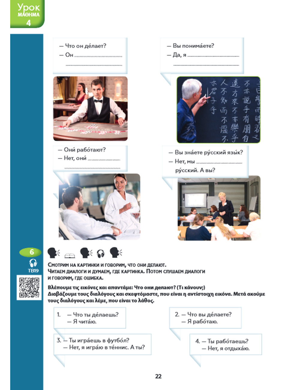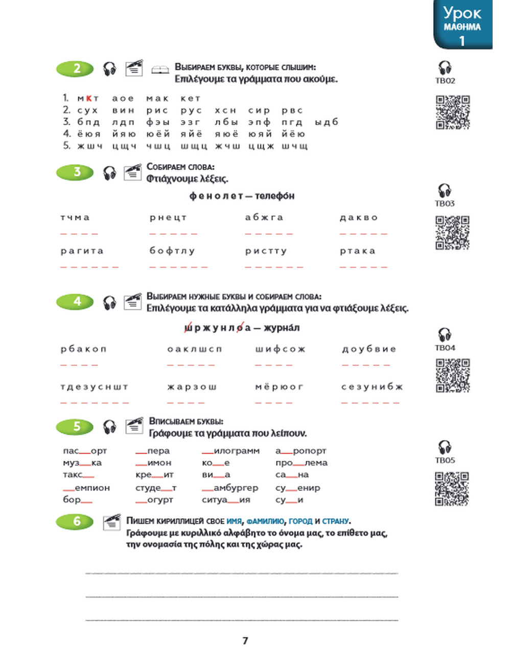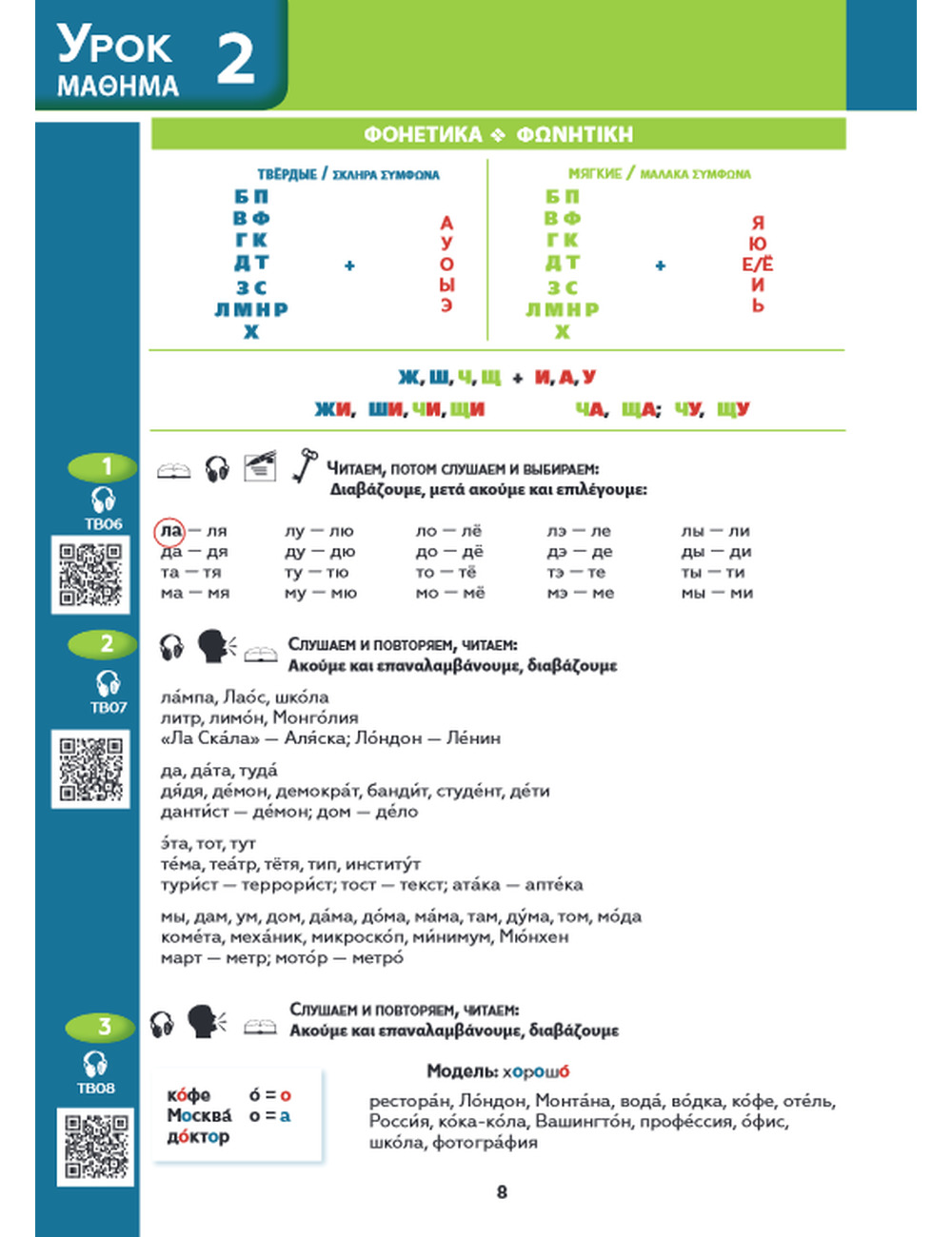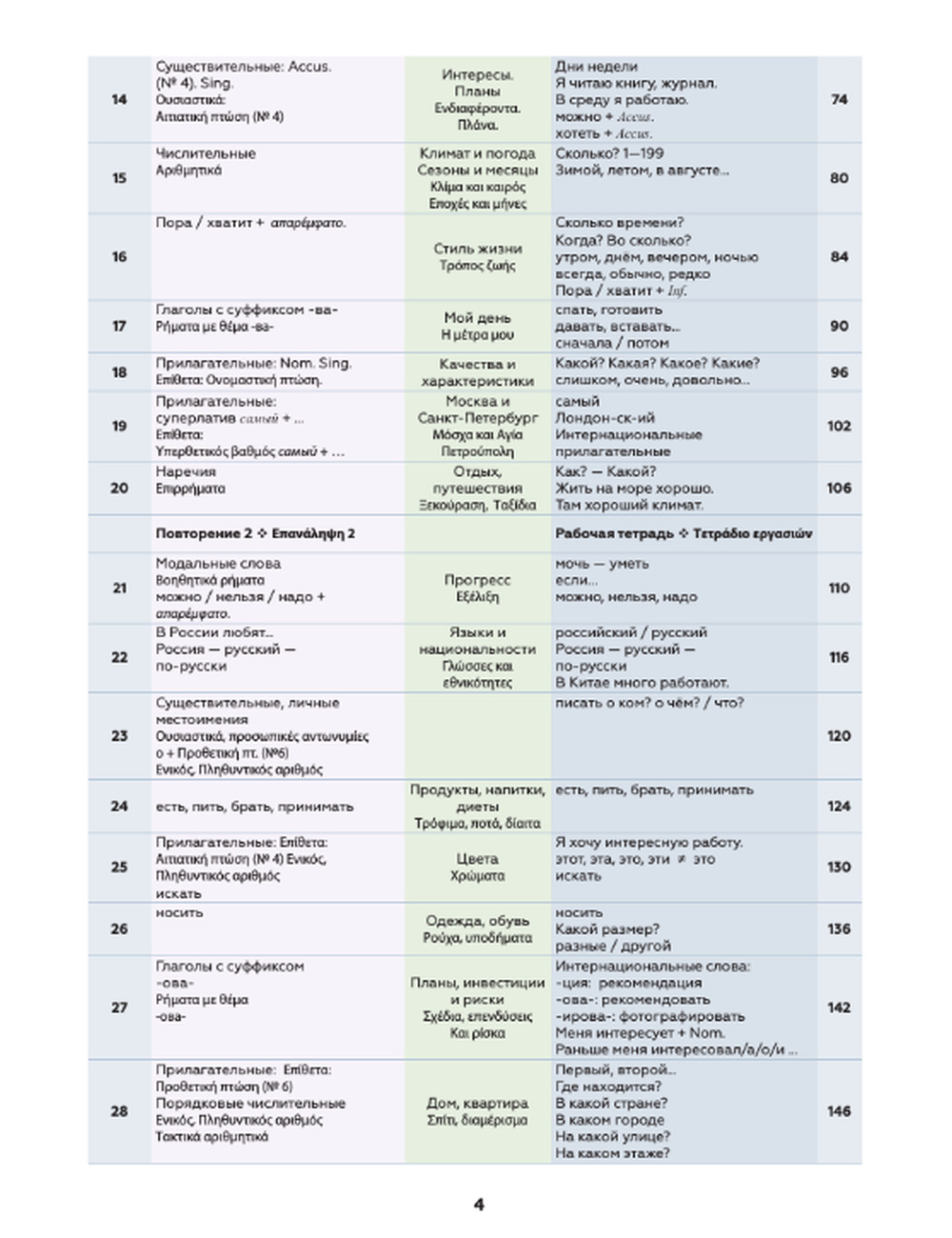 От российского издания учебник отличается переводом заданий и комментариев на греческий язык, что существенно облегчает процесс обучения, а также наличием словаря использованных слов и понятий после каждого урока и полным глоссарием всех слов с переводом на греческий язык для начального этапа обучения.