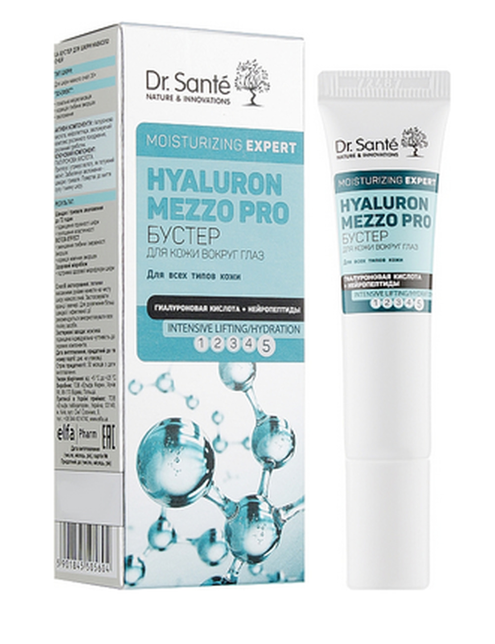 Серия косметической продукции Hyaluron Mezzo Pro от украинского бренда Dr. Sante – это профессиональный уход в домашних условиях, призванный обеспечить коже нужный уровень увлажнения. Бустер для кожи вокруг глаз отлично справляется с поставленной задачей, поддерживая нужный уровень гидратации в течение целых 72 часов. Ну а за счет омолаживающего эффекта средство разглаживает уже существующие мимические морщины и предотвращает появление новых.