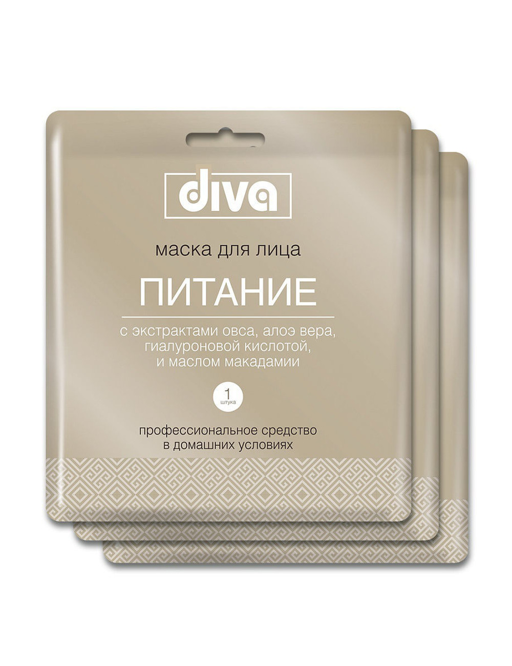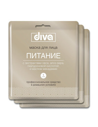 Маска DIVA ПИТАНИЕ с экстрактами ОВСА, АЛОЭ ВЕРА, ГИАЛУРОНОВОЙ КИСЛОТОЙ и МАСЛОМ МАКАДАМИИ питает, подтягивает овал лица.