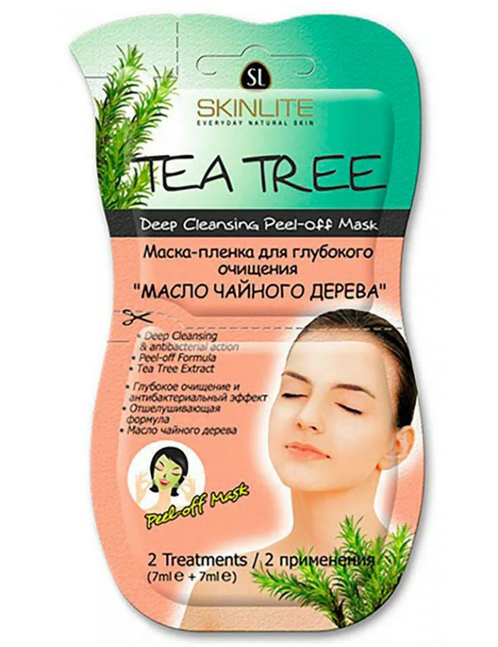 Масло чайного дерева. 2 применения (7мл х 2шт). Для всех типов кож. Маска-пленка мягко удаляет загрязнения пор и мертвые частички кожи, а масло чайного дерева оказывает антибактериальное и противовоспалительное действие, повышает иммунитет кожи и способствует устранению угревой сыпи. Структура маски позволяет натуральным ингредиентам проникать глубоко в поры кожи, очищая их и повышая увлажненность кожи. Регулярное использование маски делает Вашу кожу гладкой, ровной, шелковистой без следов каких-либо воспалений и покраснений.