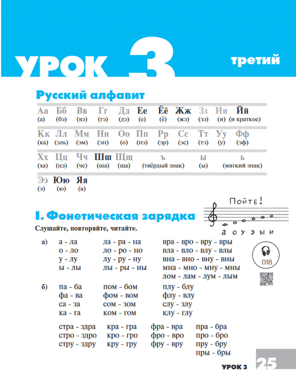 Учебник включает QR-cods для прослушивания аудиофайлов.