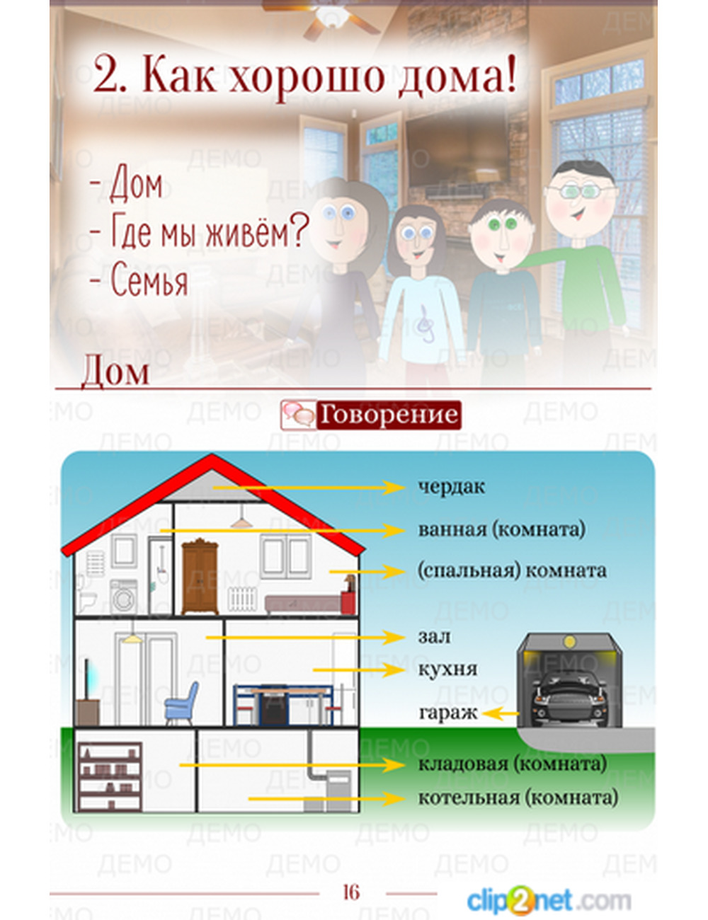 В учебнике содержится 9 тем. Каждая тема направлена на изучение лексики, приобретение разговорных языковых навыков (говорение и аудирование).
