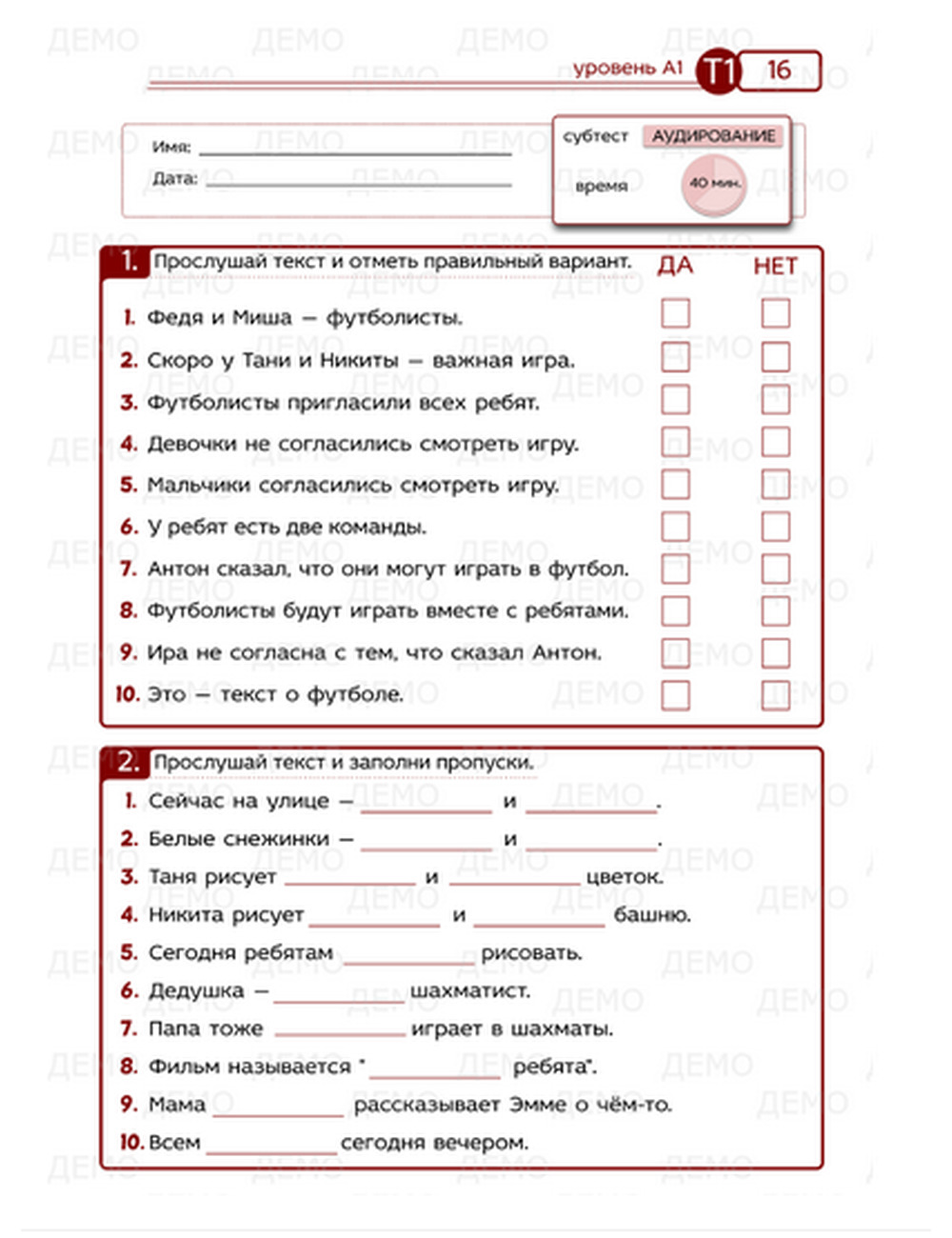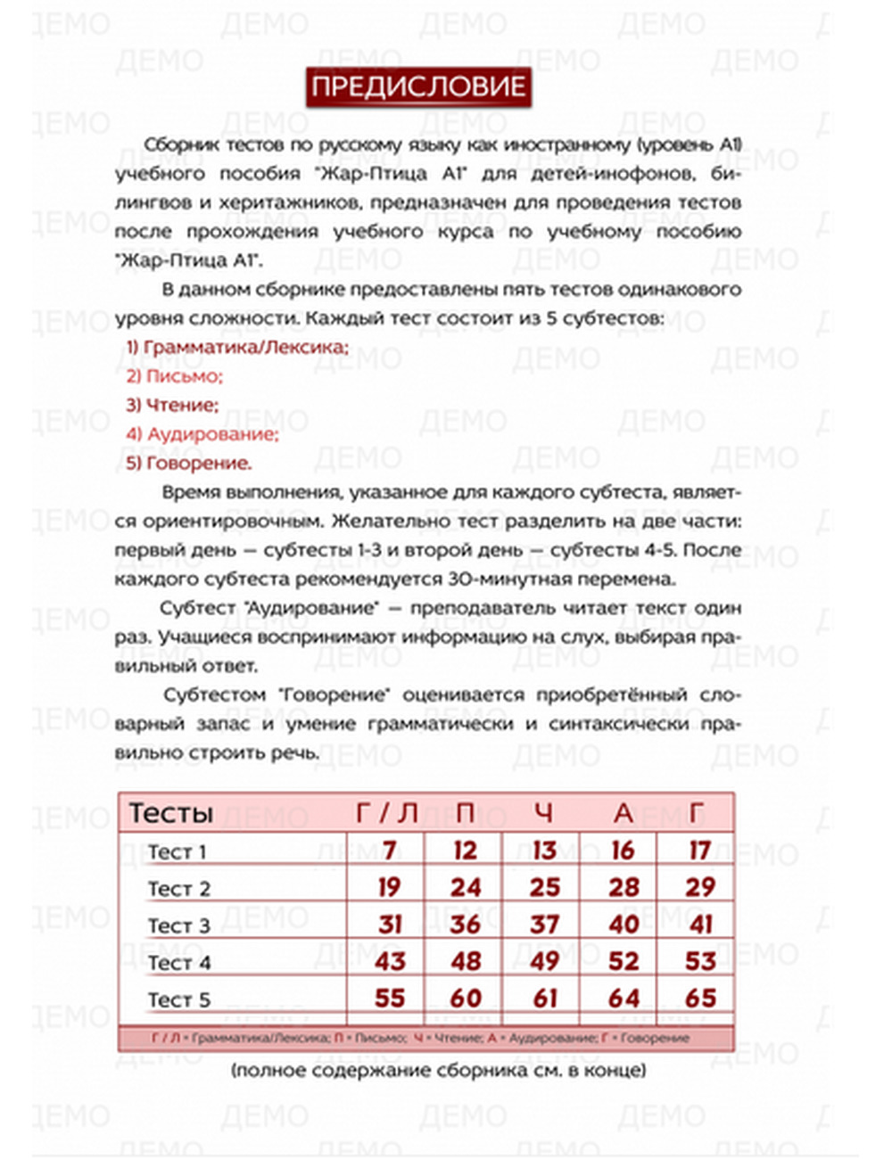 Сборник тестов, часть учебного комплекса «Жар-Птица А1».