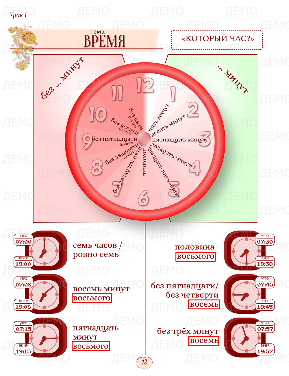 Курс состоит из 9 уроков. Каждый урок направлен на изучение лексики, грамматики, приобретение и развитие разговорных и письменных языковых навыков, оснащён большим количеством иллюстрированного материала.