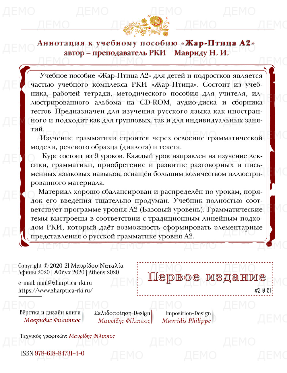 Учебное пособие «Жар-Птица А2» для детей и подростков является частью учебного комплекса РКИ «Жар-Птица».