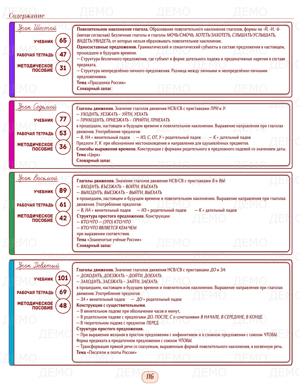 Материал хорошо сбалансирован и распределён по урокам, порядок его введения тщательно продуман. Учебник полностью соответствует программе уровня А2 (Базовый уровень). Грамматические темы выстроены в соответствии с традиционным линейным подходом РКИ, который даёт возможность сформировать элементарные представления о русской грамматике уровня А2.