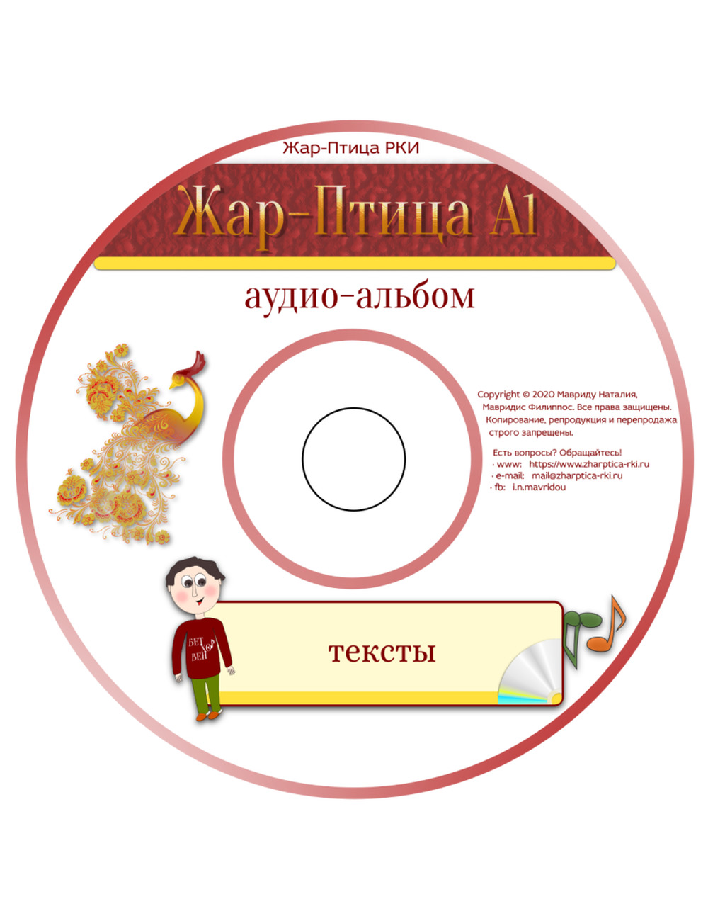 Учебное пособие «Жар-Птица А1» для детей и подростков является частью учебного комплекса РКИ «Жар-Птица». Состоит из учебника, рабочей тетради, методического пособия для учителя, иллюстрированного альбома на CD-ROM, аудио-диска и сборника тестов. Предназначен для изучения русского языка как иностранного инофонами, билингвами и херитажниками. Подходит как для групповых, так и для индивидуальных занятий.