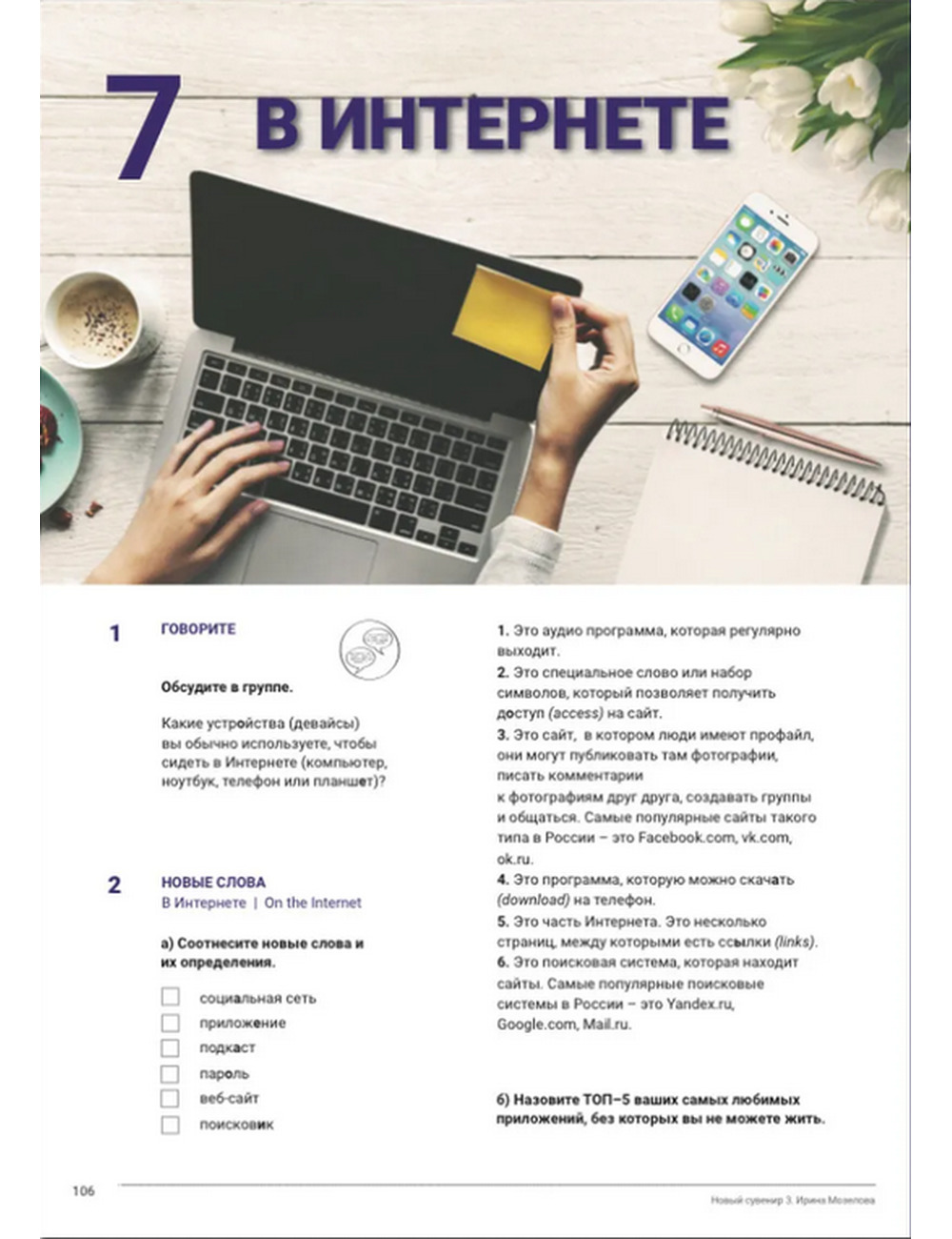 Учебно-методический комплекс «Новый сувенир» включает в себя учебник, рабочую тетрадь, книгу для преподавателя. Данный курс рассчитан на англоговорящих учеников, которые уже владеют русским языком на уровне А2 (базовый) и хотят улучшить владение русским языком до среднего уровня (B1 – Первый сертификационный уровень). Данный курс рекомендуется использовать на индивидуальных или групповых занятиях под руководством преподавателя. Весь курс состоит из 10 разделов. В каждом разделе по 4 урока, где каждый четвёртый урок – это урок-повторение пройденного материала. Рабочую тетрадь рекомендуется использовать для выполнения домашних заданий. Все задания рабочей тетради соответствуют пройденному материалу в учебнике.