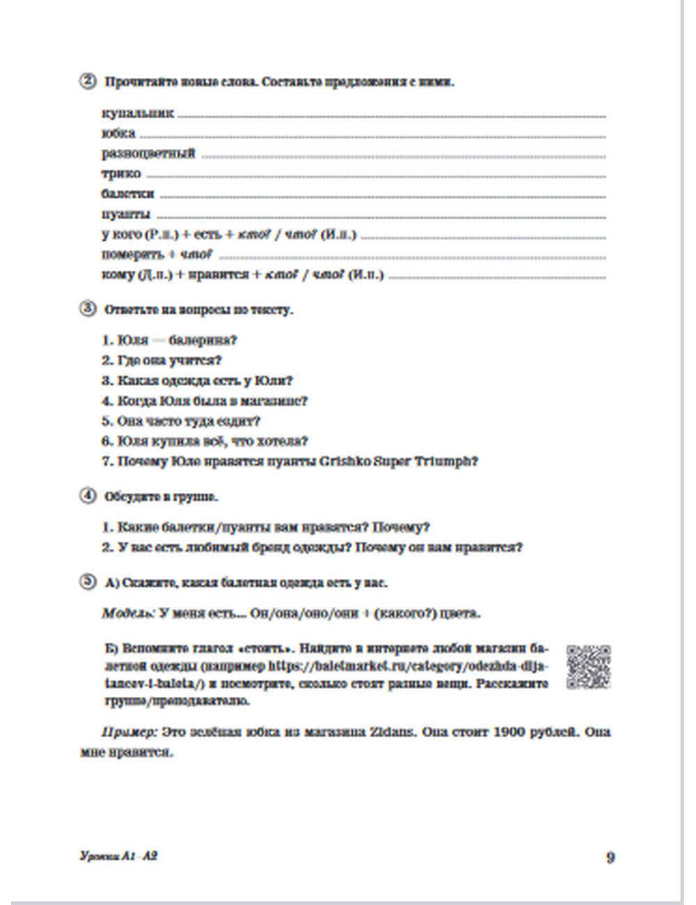 «Мир русского балета» не заменит основной учебник по РКИ, но станет ценным дополнением, которое позволит преподавателю вводить необходимую для успешной коммуникации в балетной среде лексику, отрабатывать ключевые для того или иного уровня грамматические конструкции и обсуждать насущные проблемы.