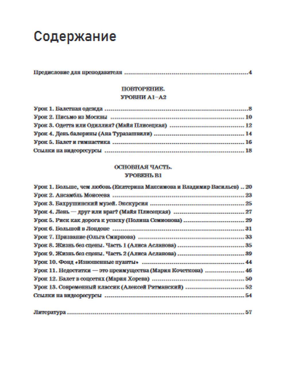 Таким студентам и их преподавателям обычно не хватает качественных и интересных материалов о жизни современного балета. В данном пособии, включающем тексты и задания для студентов уровней A1-B1, автор постарался решить эту проблему.