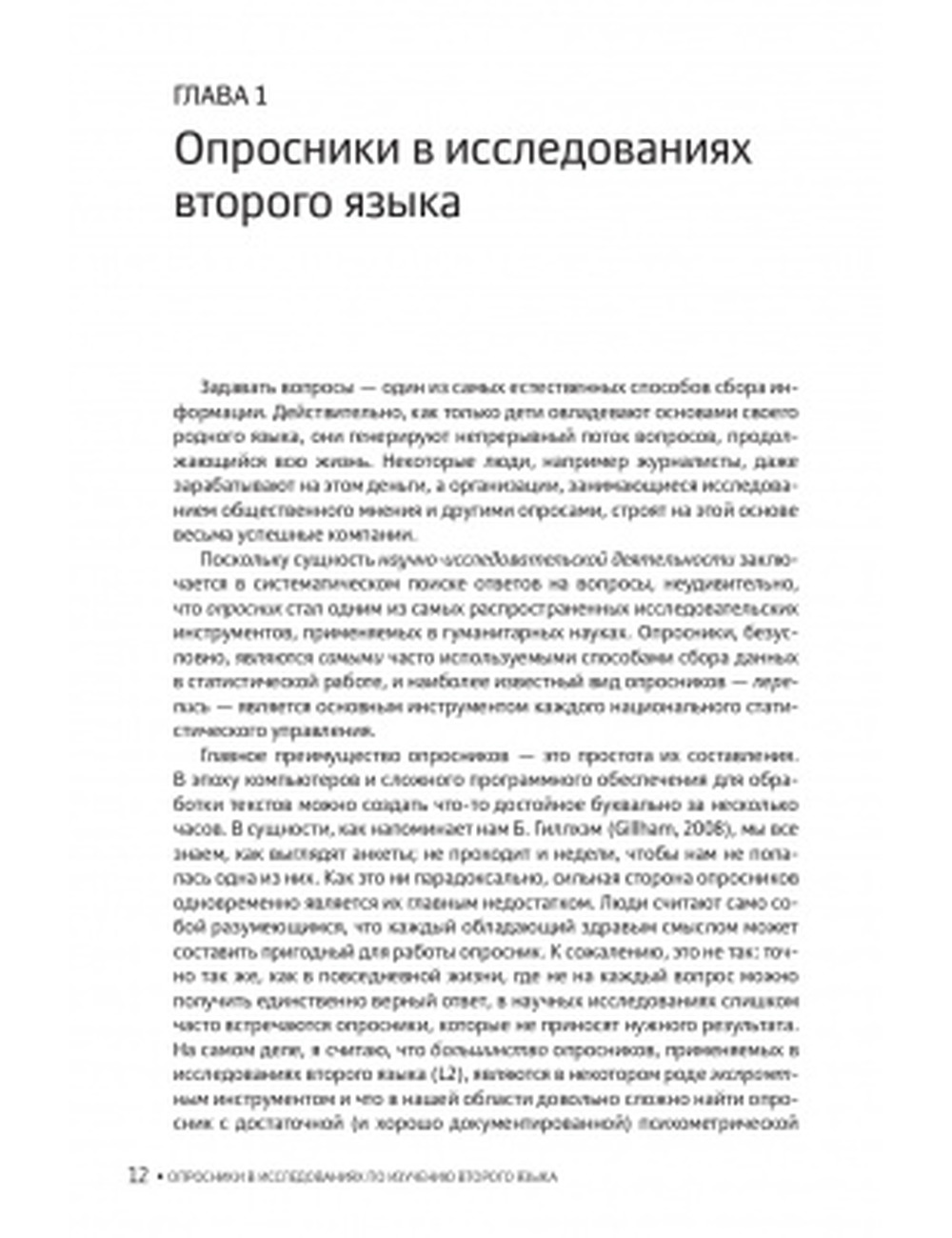 Это издание призвано помочь исследователям избежать этих ошибок. В нем представлен подробный обзор теории разработки, администрирования и обработки вопросников, доступный, благодаря конкретным, реальным примерам применения для изучения второго языка. Данное второе издание содержит новую главу о том, как, с использованием теоретических руководств, в книге был разработан реальный научный инструмент, и новые разделы о переводе вопросников и сборе данных, полученных посредством опросников в Интернете. Исследователи и студенты, изучающие второй язык, прикладную лингвистику и программы TESOL (преподавание английского языка носителям других языков) сочтут эту книгу бесценной. Помимо этого, ее также можно использовать в качестве учебника для курсов по методологии количественных исследований и исследований в области лингвистики, психологии и образования.