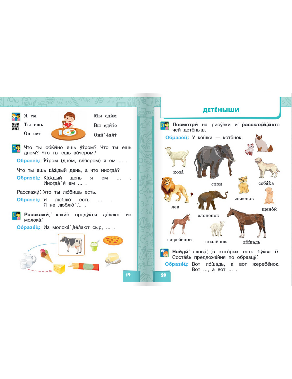 К текстам, содержащим сложную для воспроизведения новую лексику, прилагаются аудиозаписи, выполненные профессиональными дикторами. Прослушать их можно, сосканировав размещённые на страницах учебника QR-коды с помощью установленного на смартфон или планшет приложения, которое можно загрузить по ссылке: http://russlo-edu.ru/app/RS_AR.apk.