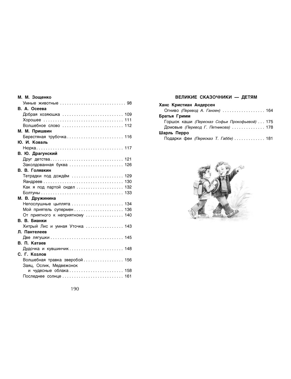 В сборник вошли рекомендованные для прочтения в 1 классе сказки русских и зарубежных авторов и лучшие детские произведения классиков русской литературы: Пушкина, Толстого, Лермонтова, Есенина, Тютчева и других. Сборник состоит из разделов: "Устное народное творчество", "Русские писатели – детям", "Российские писатели – детям", "Великие сказочники– детям".