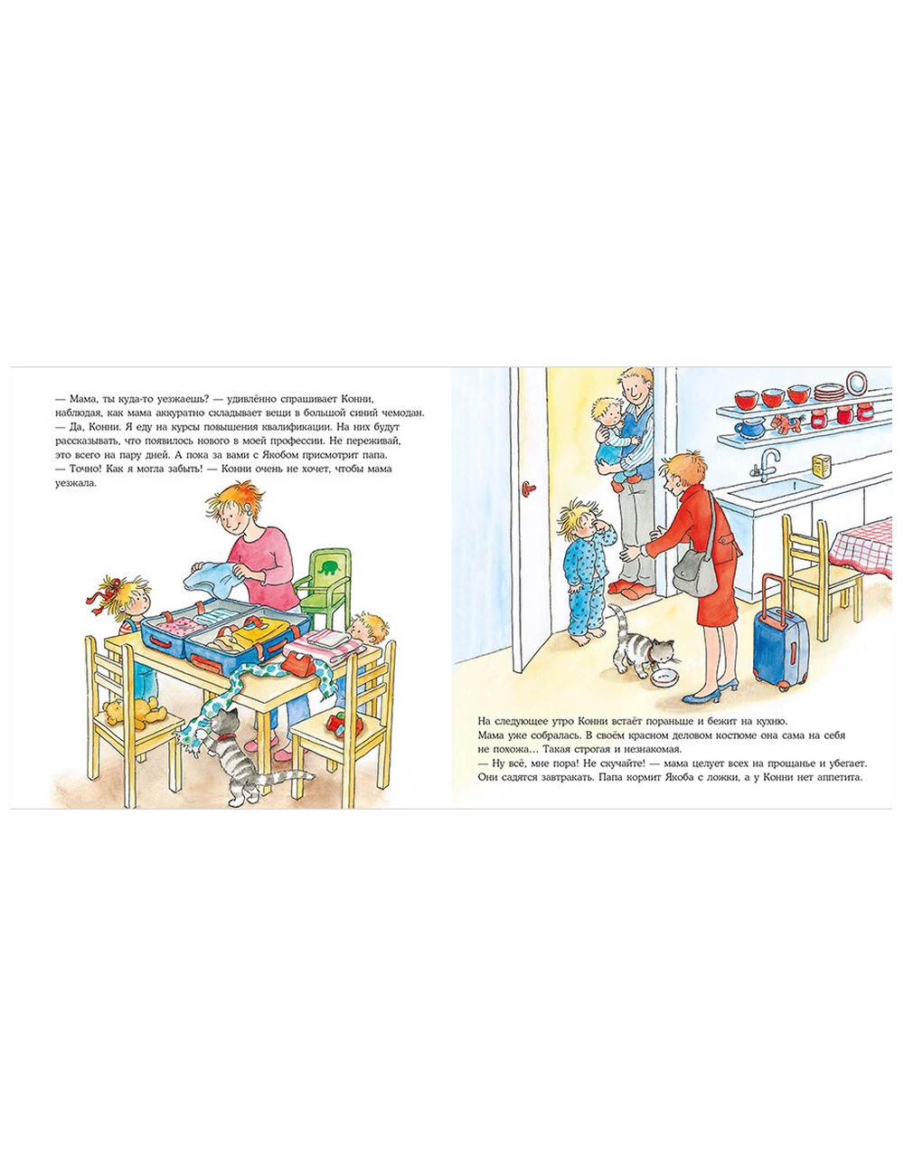 Вы уже прочитали историю? Тогда закройте книгу и предложите малышу вспомнить, про что была история. Зачем мама уехала в командировку? Как папа понял, что Конни заболела? Какие лекарства Конни надо было пить, чтобы поскорее поправиться?