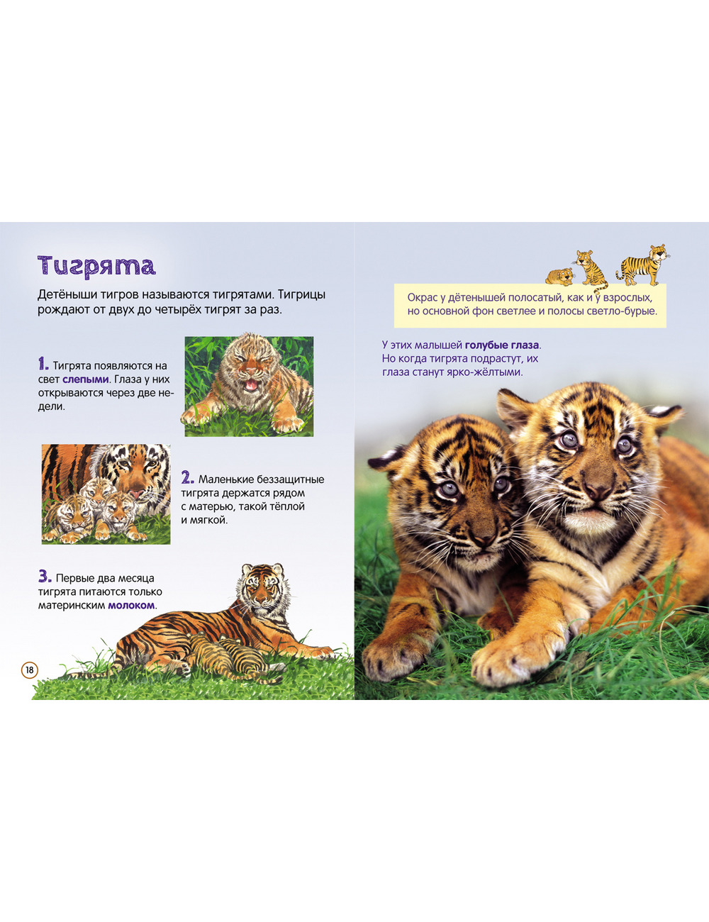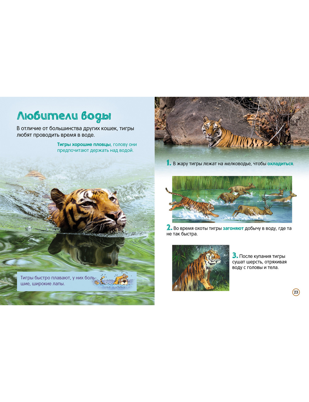 Книга расскажет много интересного о жизни тигров: где и как они охотятся, зачем царапают деревья, умеют ли плавать, как защищают свою территорию от чужаков, чему учат детёнышей, какие имеют повадки.