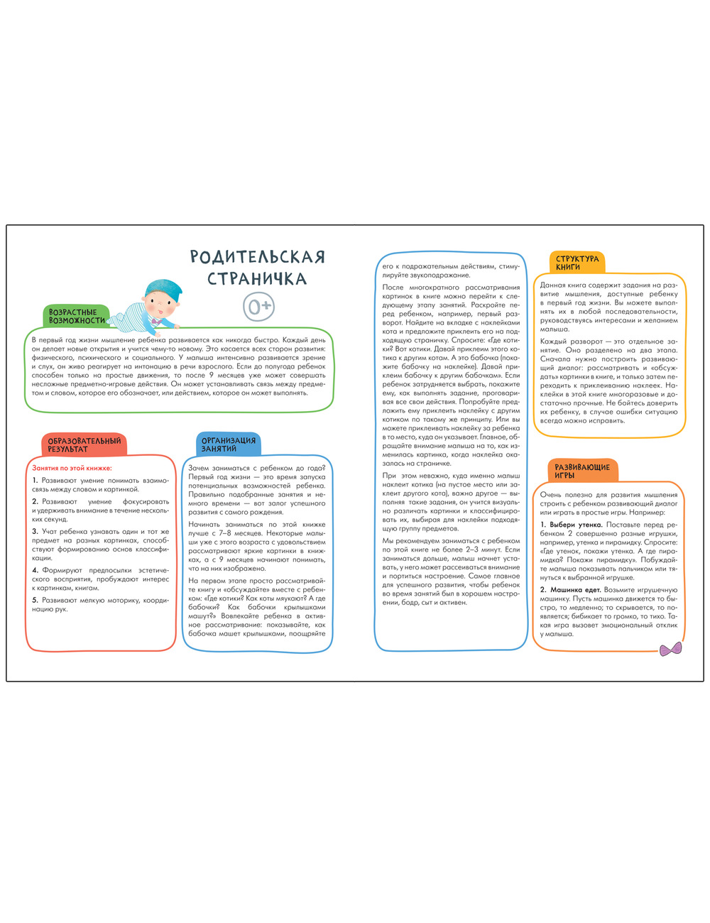 Книга «Развитие мышления 0+» из серии «Школа Семи Гномов. Активити с наклейками» предназначена для развития и тренировки мышления детей от рождения до года.