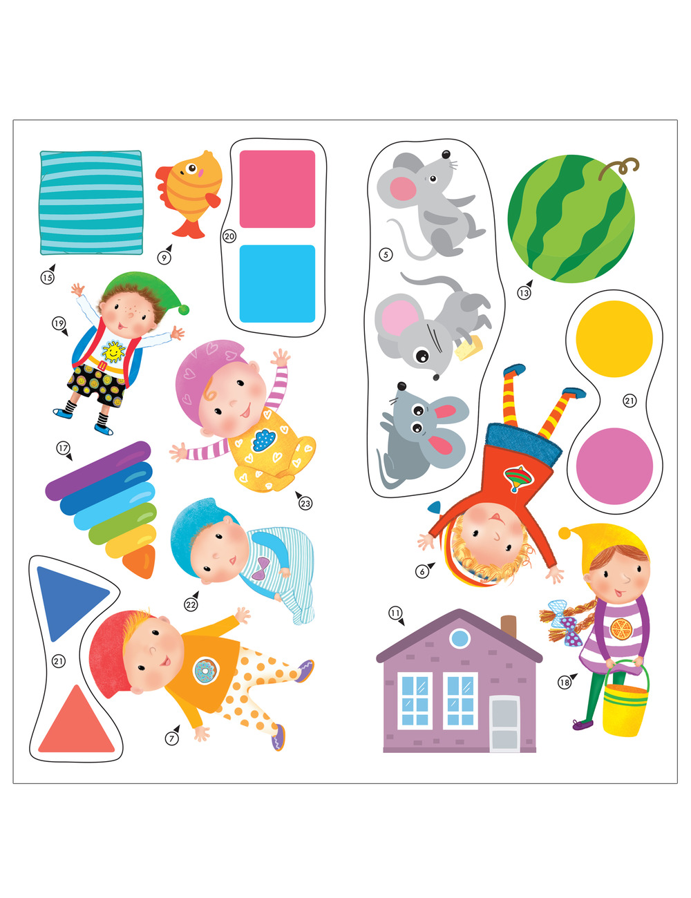 Книга «Счет, форма, величина 0+» из серии «Школа Семи Гномов. Активити с наклейками» предназначена для формирования и развития у детей от 1 года до 2 лет элементарных математических представлений, способности сопоставлять величину предметов, определять их форму.
