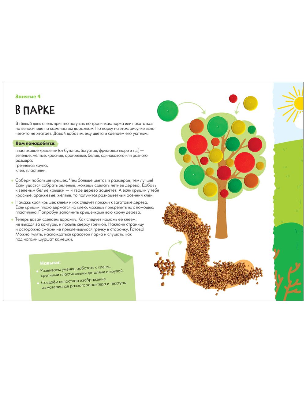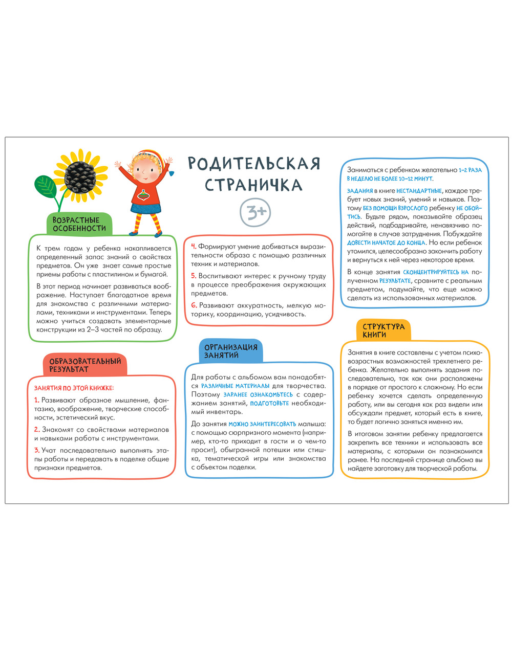 Книга «Декоративное творчество 3+» из серии «Школа Семи Гномов. Мастерская» — это красочный альбом для занятий творчеством с ребенком от 3 до 4 лет. Занятия на близкие и понятные ребенку темы расположены по мере усложнения: поступательно переходя от освоения простых навыков к более сложным заданиям, ребенок научится создавать творческую работу из подручных материалов с помощью клея и пластилина.
