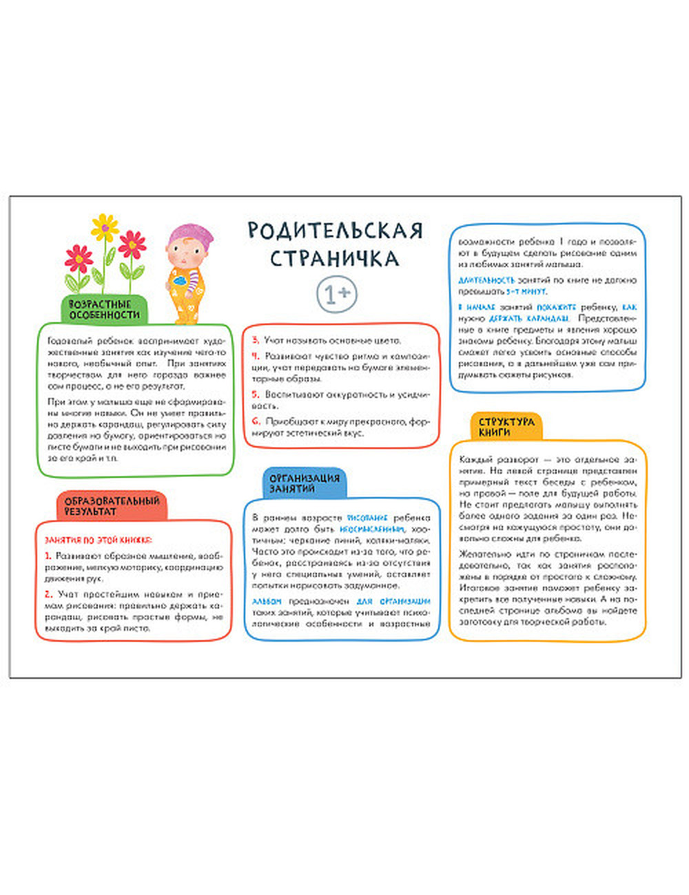 Книга «Рисуем карандашами 1+» из серии «Школа Семи Гномов. Мастерская» — это красочный альбом для занятий рисованием с ребенком от 1 года до 2 лет. Занятия на близкие и понятные ребенку темы расположены по мере усложнения: поступательно переходя от освоения простых навыков к более сложным заданиям, ребенок научится создавать рисунки с помощью карандашей или фломастеров.