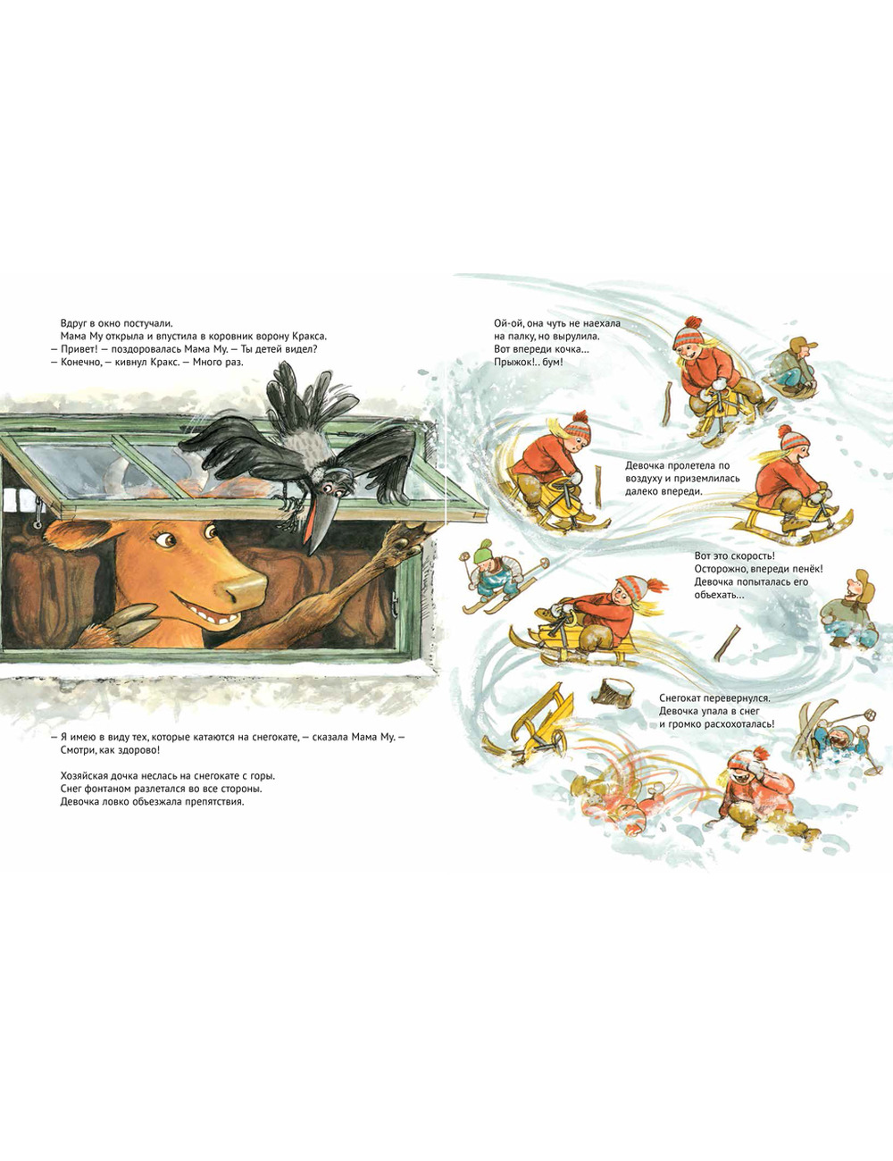 Мама Му - самая весёлая корова на свете, а Кракс - её лучший друг. Правда, характер у него не сахар. Кракс любит ворчать и хвастаться. А Мама Му всегда готова к приключениям, она обожает пробовать что-то новое. Вот, например, сейчас она собирается покататься на снегокате, а Кракс этого совсем не одобряет. Что же будет дальше?