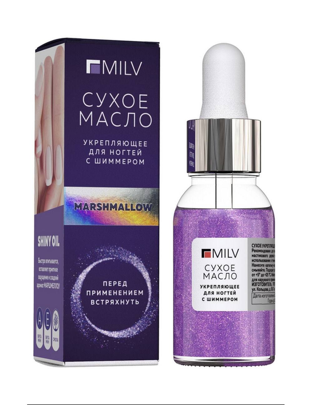 Смола мастикового дерева в составе средства повышает прочность ногтей при ежедневном использовании в течение 1 месяца. Сладкий аромат воздушного лакомства маршмеллоу поднимает настроение. Мелкие частицы придают коже мерцающее сияние.