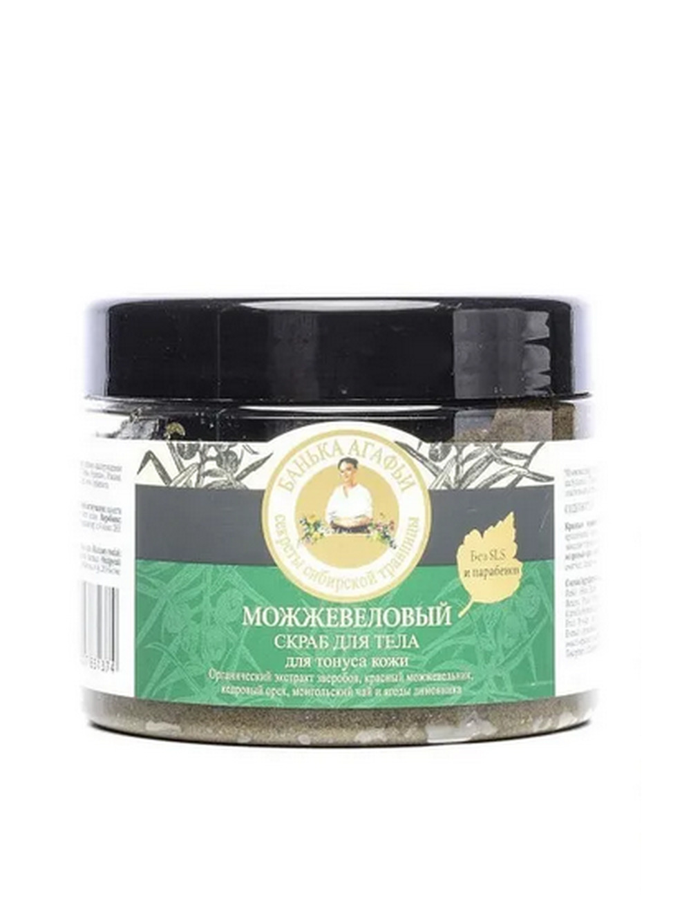 Можжевеловый скраб бережно очищает кожу и устраняет шелушение. Тонизирует, активно увлажняет, возвращая коже эластичность и продлевая молодость. Красный можжевельник и ягоды лимонника содержат органические кислоты и витамин С, которые способствуют активному очищению кожи от ороговевших клеток. Монгольский чай увлажняет, а кедровый орех богат витаминами E и F, которые замедляют процессы увядания кожи. Органический экстракт зверобоя смягчает, делает кожу гладкой и подтянутой.