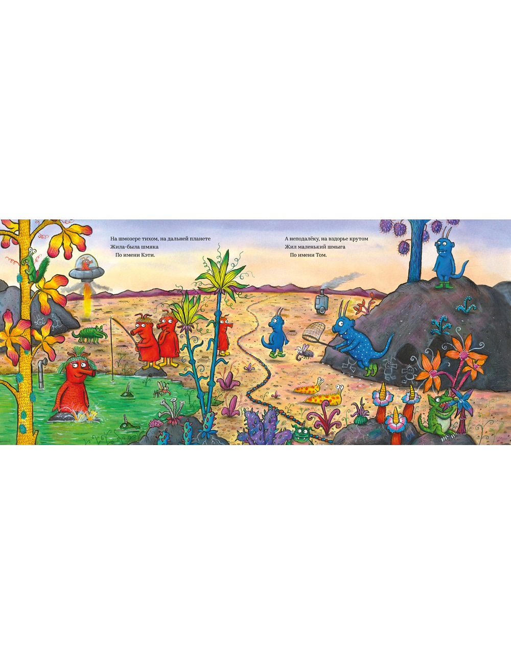 Однажды на далёкой-далёкой планете встретились и полюбили друг друга Том и Кэти. Но Том шмыга, и, как все шмыги, он синий, как чернила. Кэти же - шмяка, и, как все шмяки, она красная как мак. А всем с давних пор известно, что шмыгам и шмякам не бывать друзьями. Что же будет, когда их родня и соплеменники обо всём узнают? Читайте детям вслух - Джулия Дональдсон - Шмыги и шмяки - от создателей детского супербестселлера "Груффало".